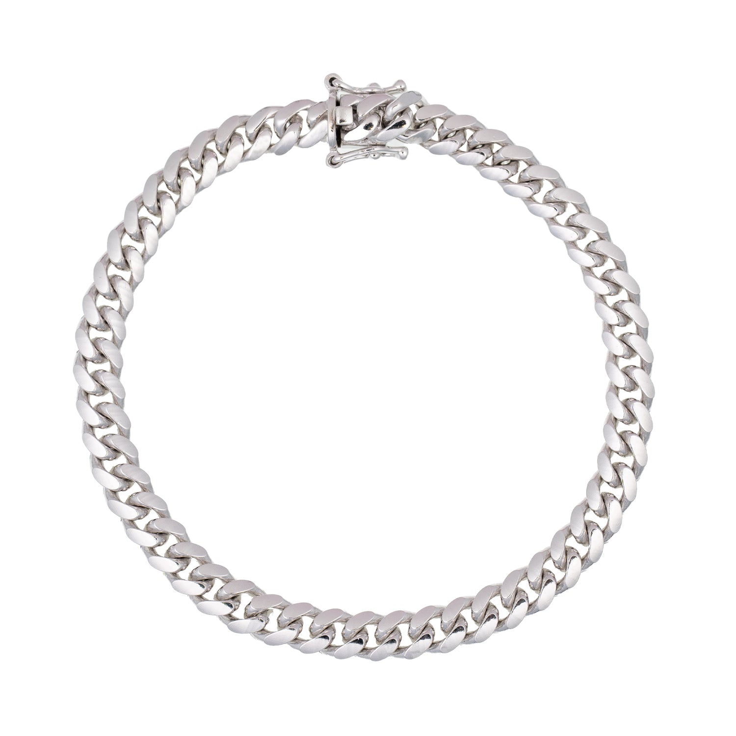 This sterling silver Miami Cuban bracelet features bold, closely interlocking links for a strong and polished look. Its substantial weight and smooth finish make it a standout piece, perfect for everyday wear or adding a sleek edge to any collection. A classic choice with modern appeal.Details