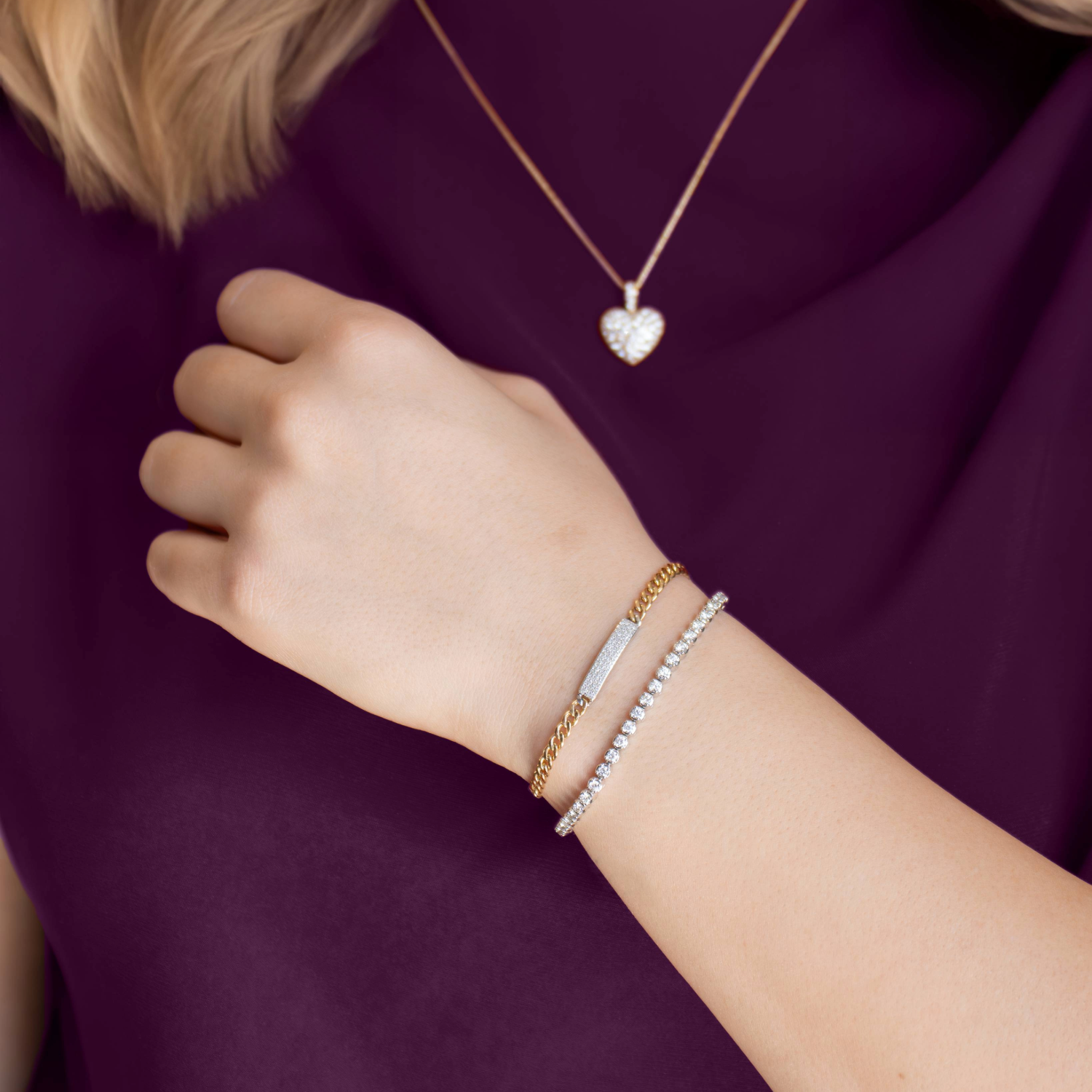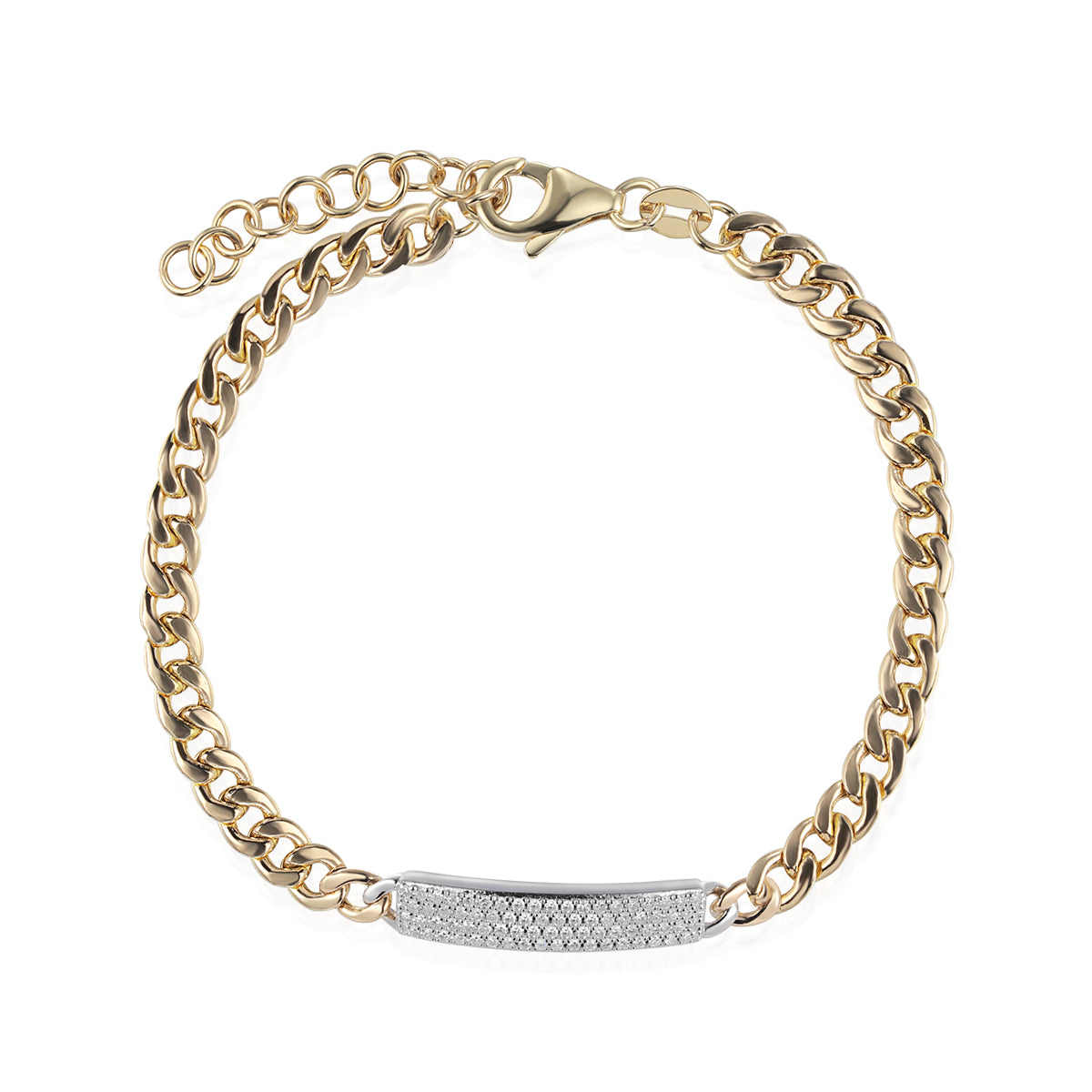 14K Two Tone Curb Link Diamond Pavé ID Bracelet