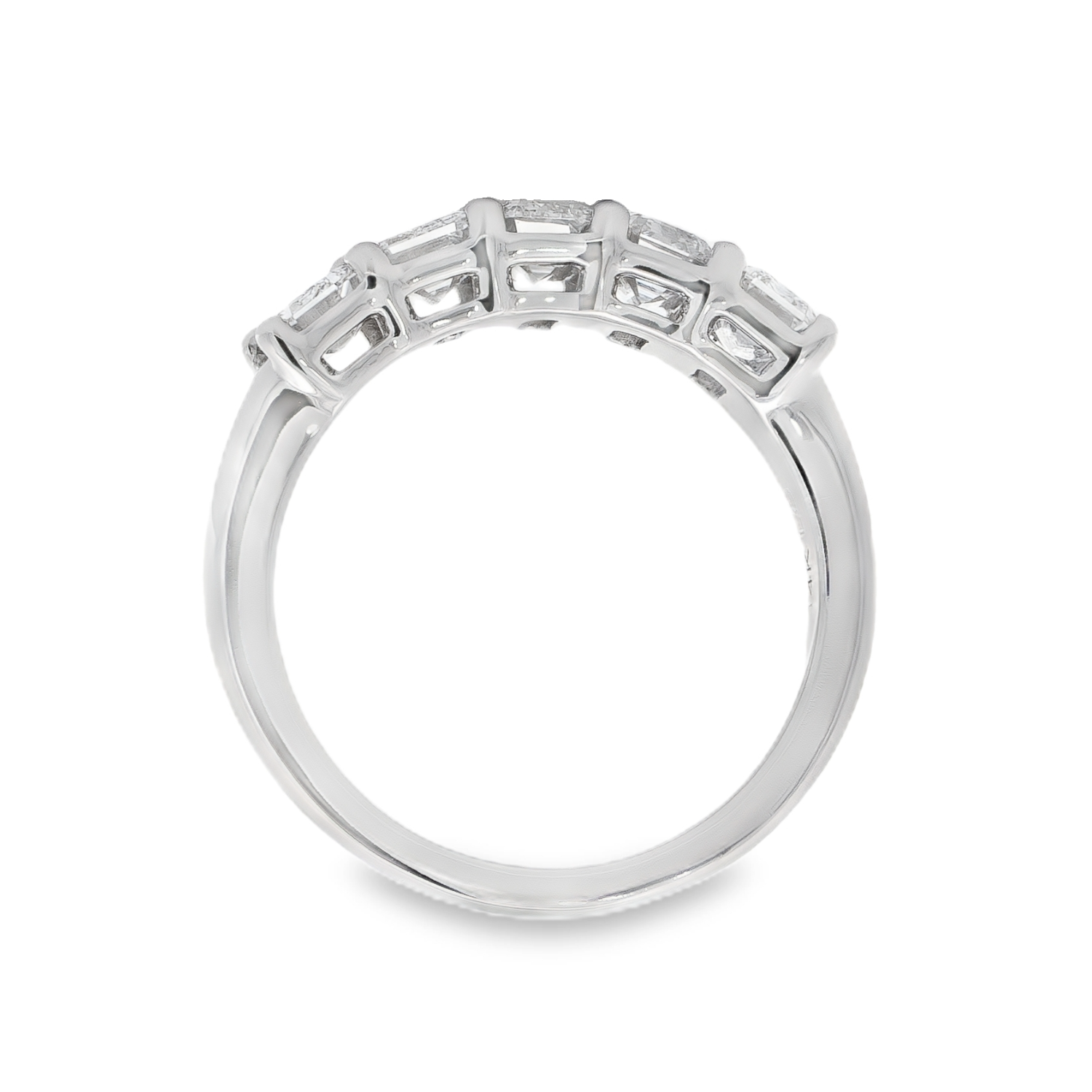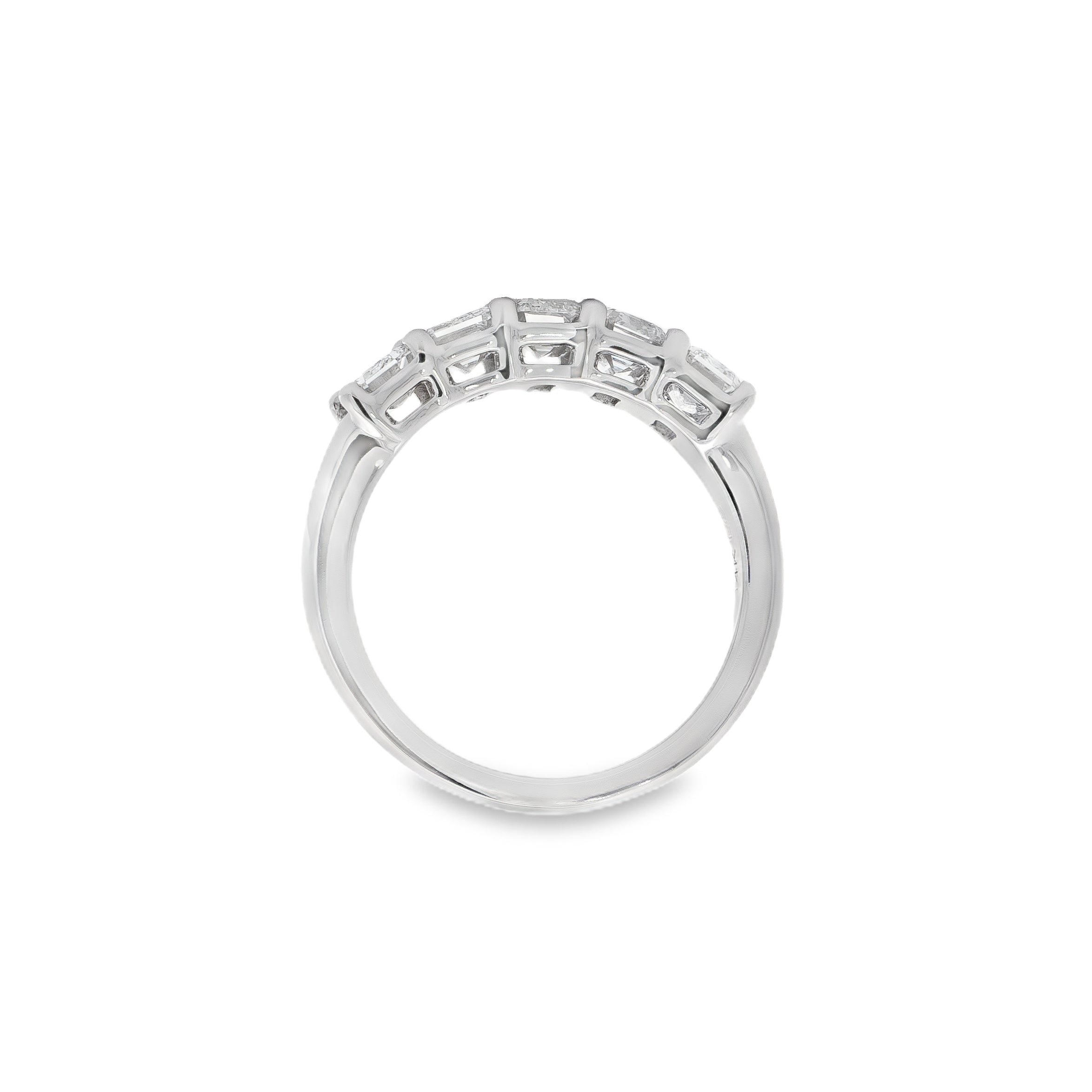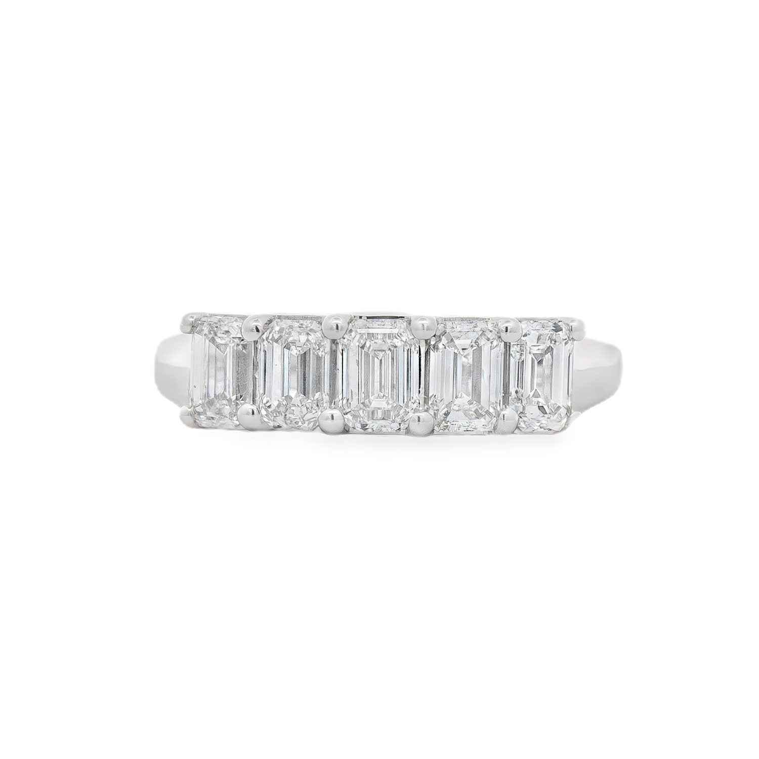 Make a striking statement with this 14K white gold five-stone band, featuring emerald cut lab grown diamonds in a sleek, linear arrangement. The elegant design creates a refined brilliance, perfect for anniversaries, weddings, or simply adding a touch of luxury.Details
