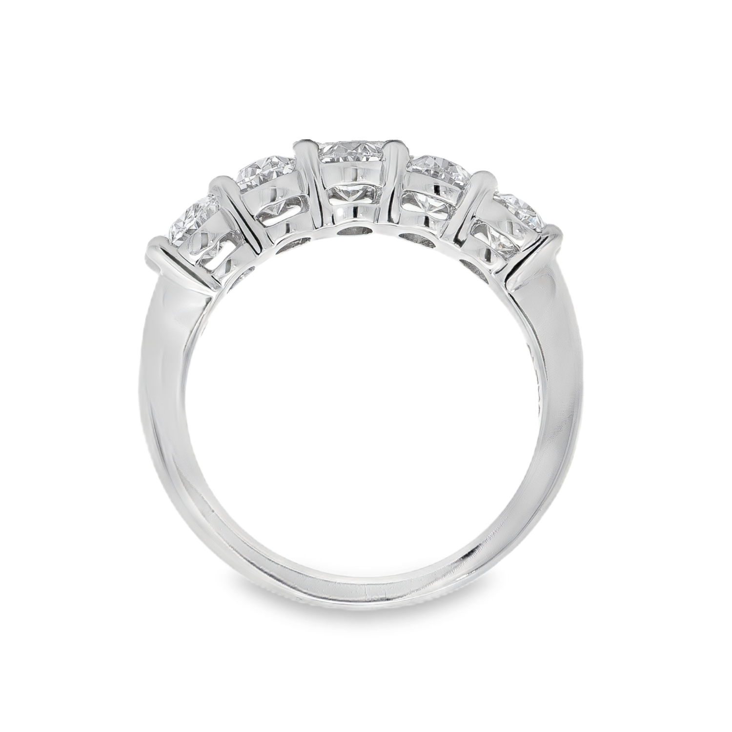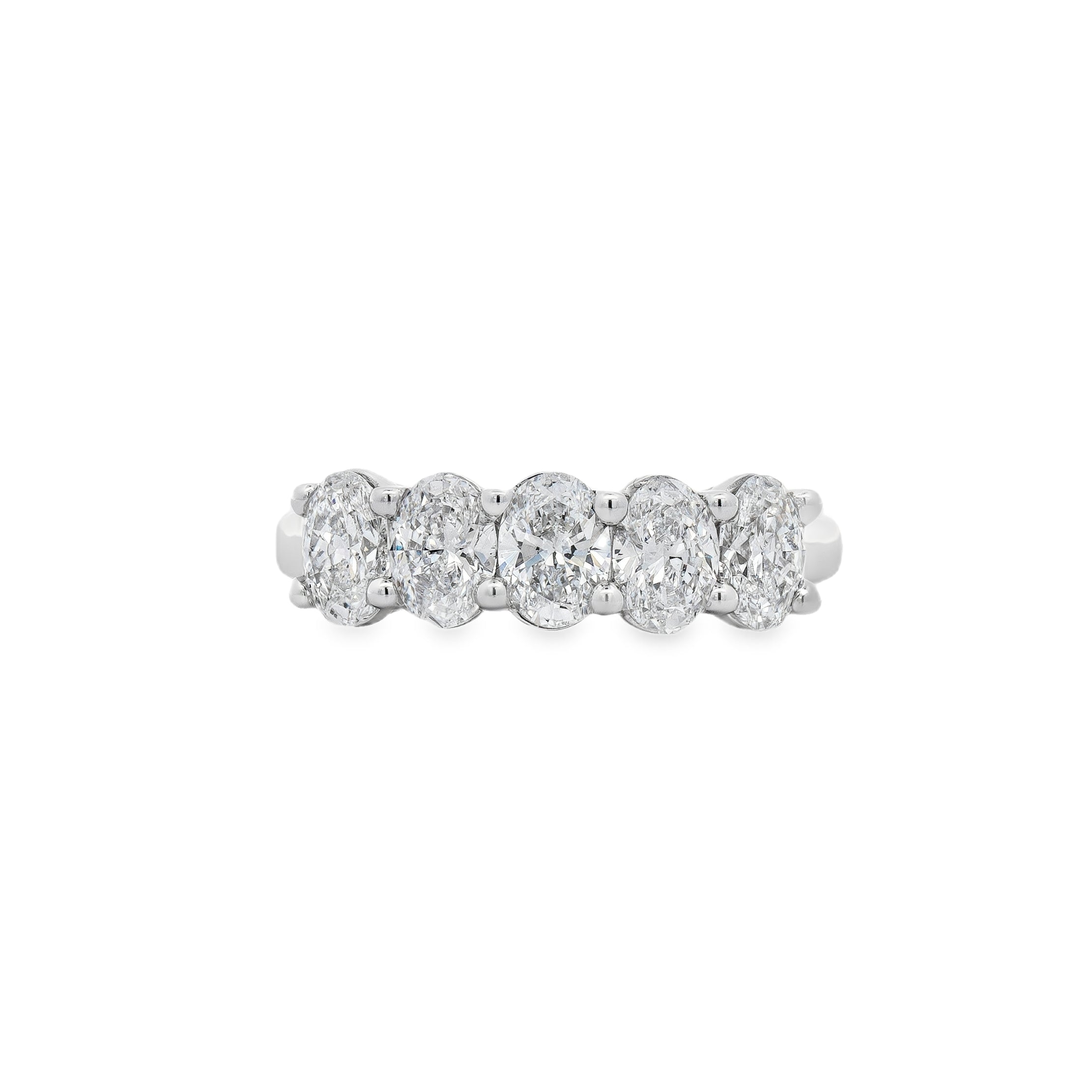 Make an unforgettable impression with this 14K white gold band, showcasing five oval lab grown diamonds in a classic setting. The slender design highlights each diamond’s exceptional sparkle, offering a sophisticated yet timeless look.Details