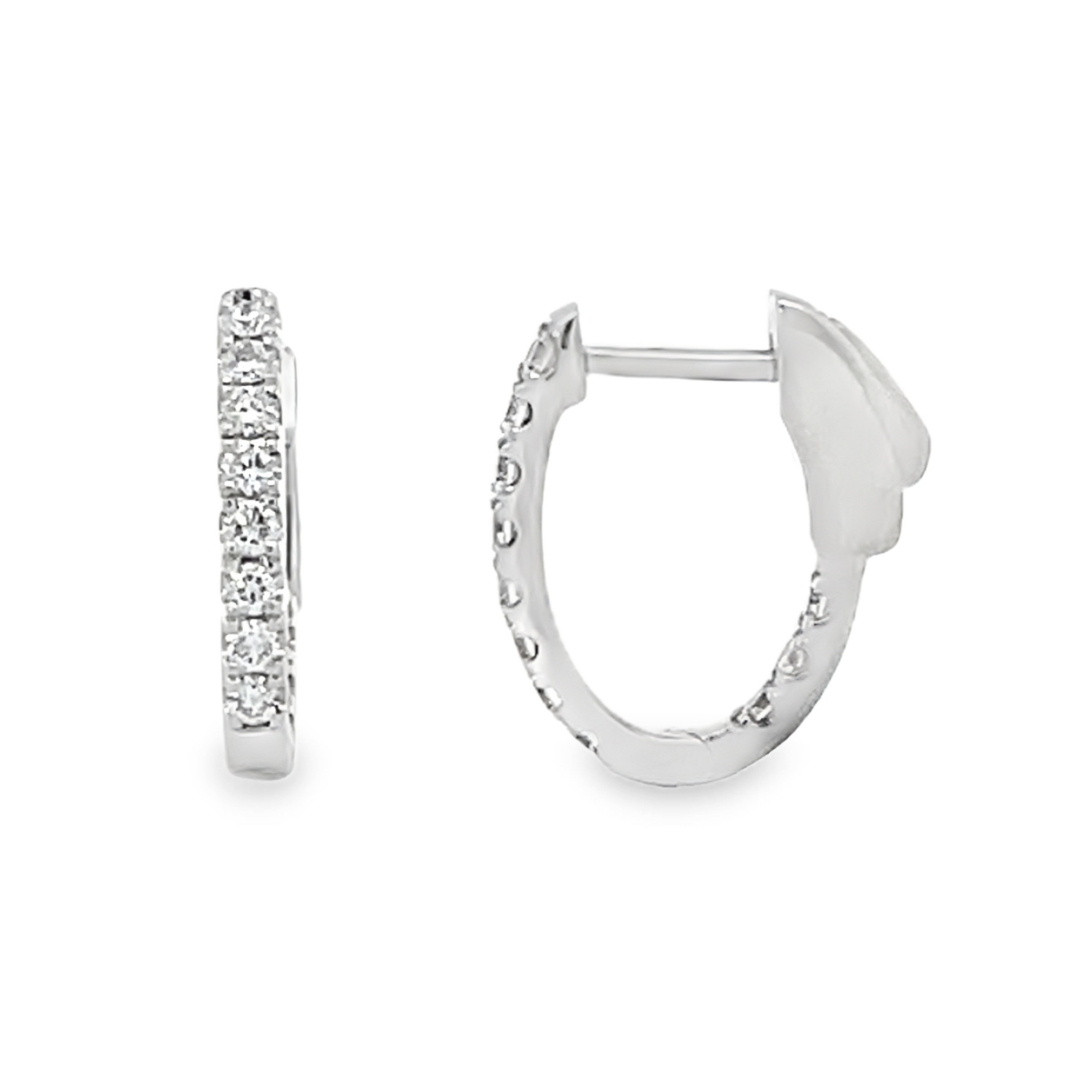 A refined take on a timeless classic, these 14K white gold oval hoop earrings feature dazzling diamonds set both inside and out for maximum brilliance from every angle. The elegant oval shape provides a sleek and sophisticated look, making them perfect for any occasion.