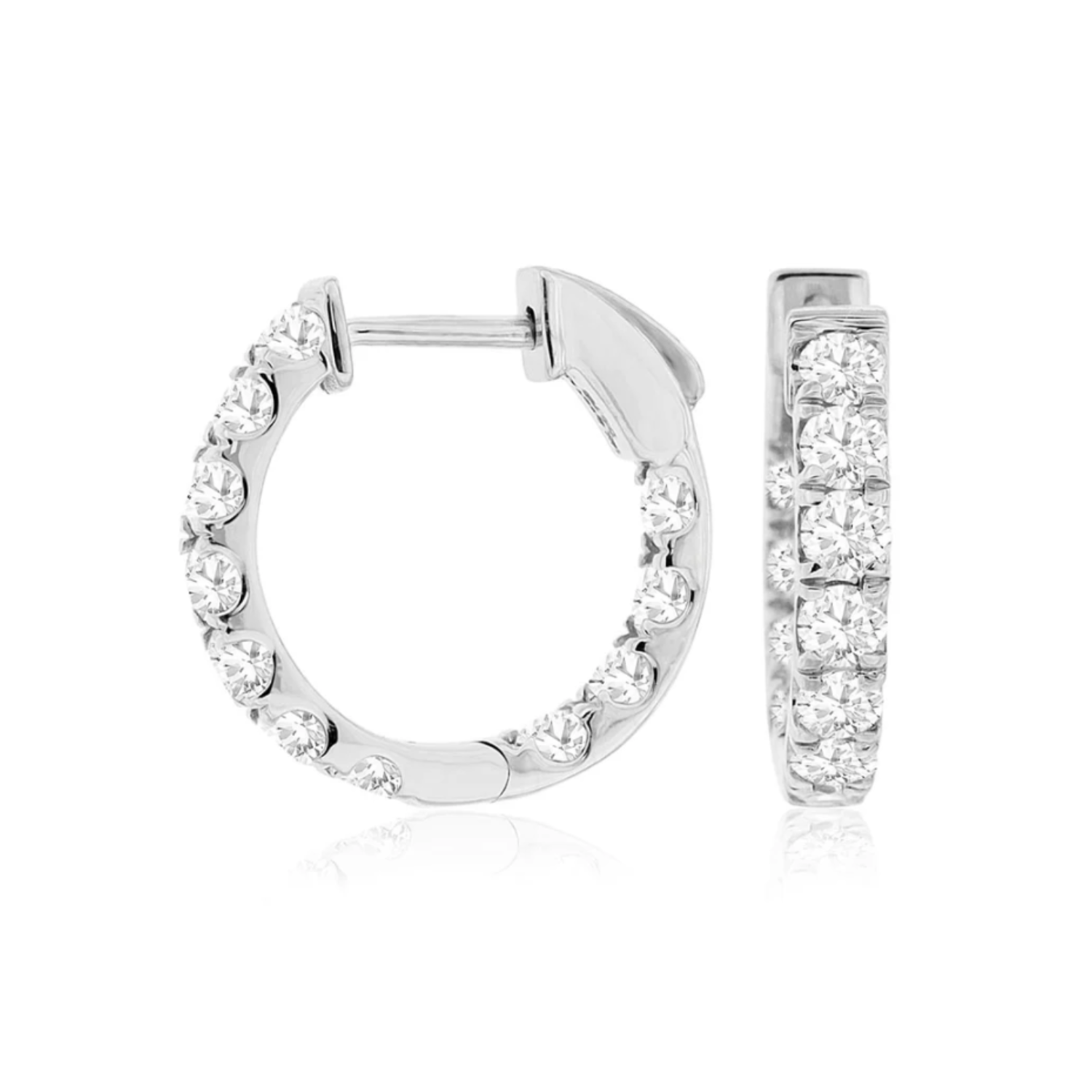 14K White Gold 16 mm Inside-Out Diamond Hoops