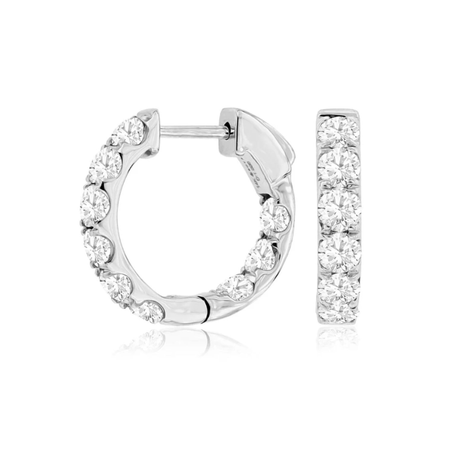 14K White Gold 16 mm Inside-Out Diamond Hoops