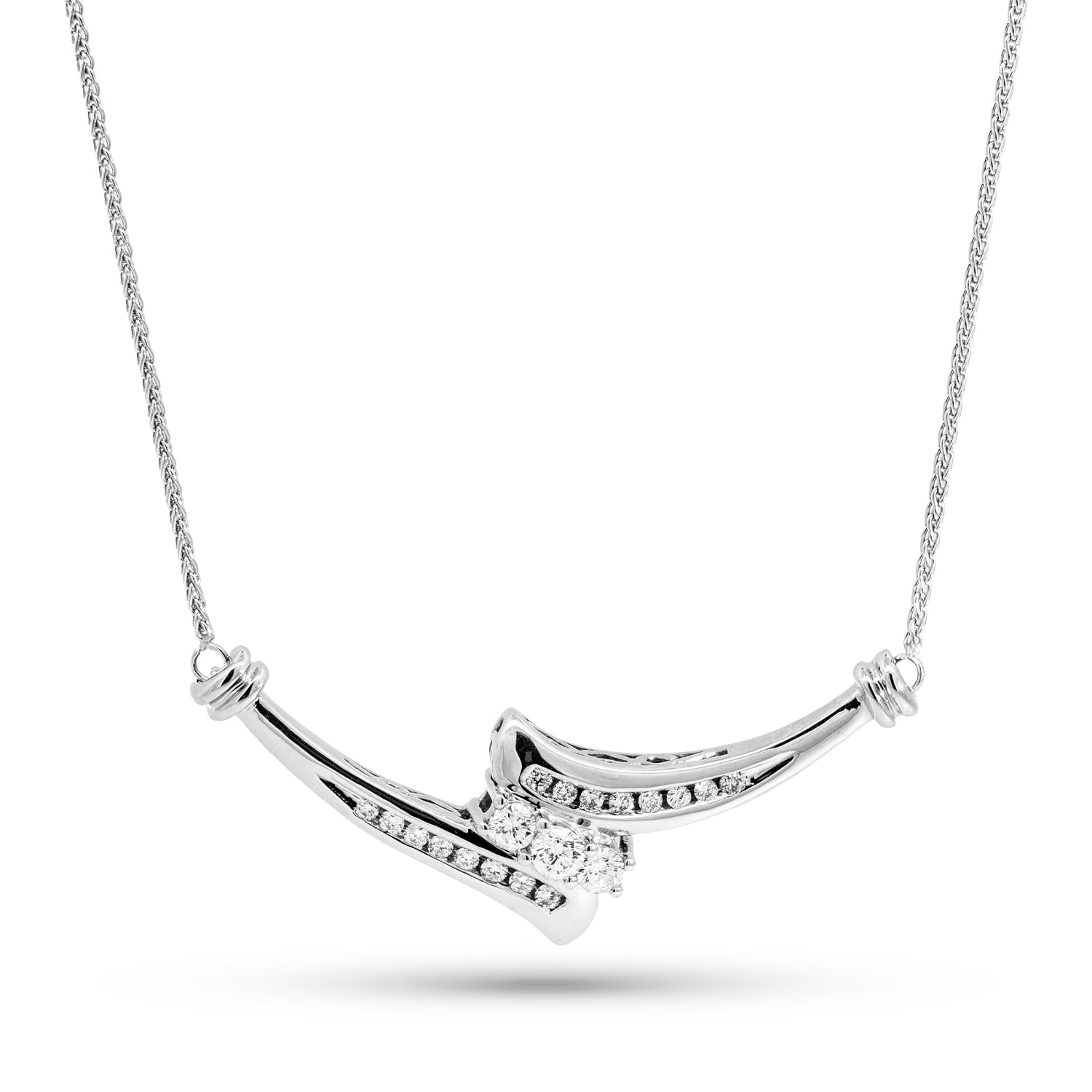 14K White Gold Past, Present, Future Diamond Necklace