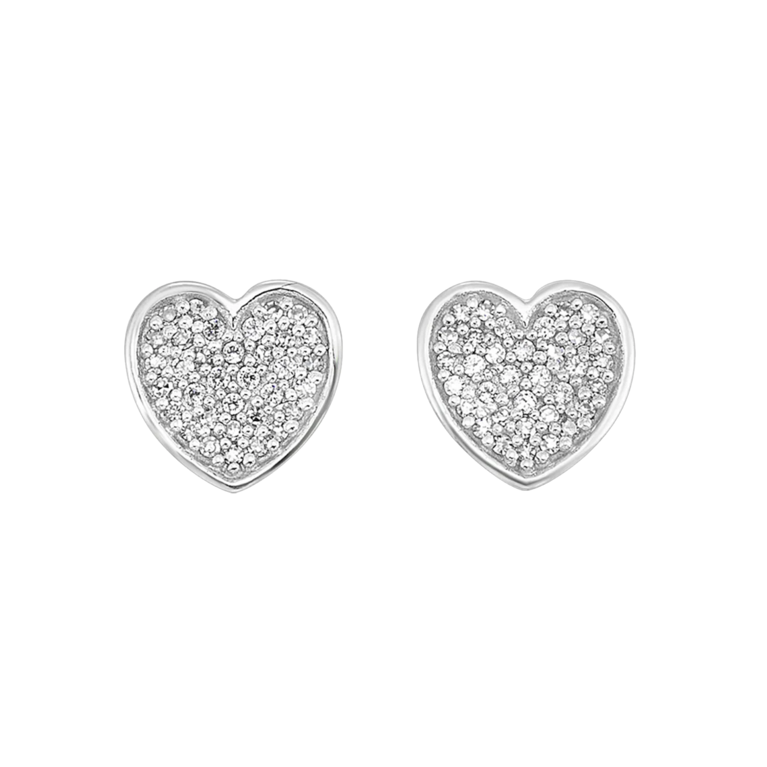 These sterling silver earrings feature a heart motif, beautifully adorned with pave set diamonds for a shimmering effect. Perfect for expressing love and adding a touch of elegance to everyday wear, these earrings are a charming addition to any jewelry collection.