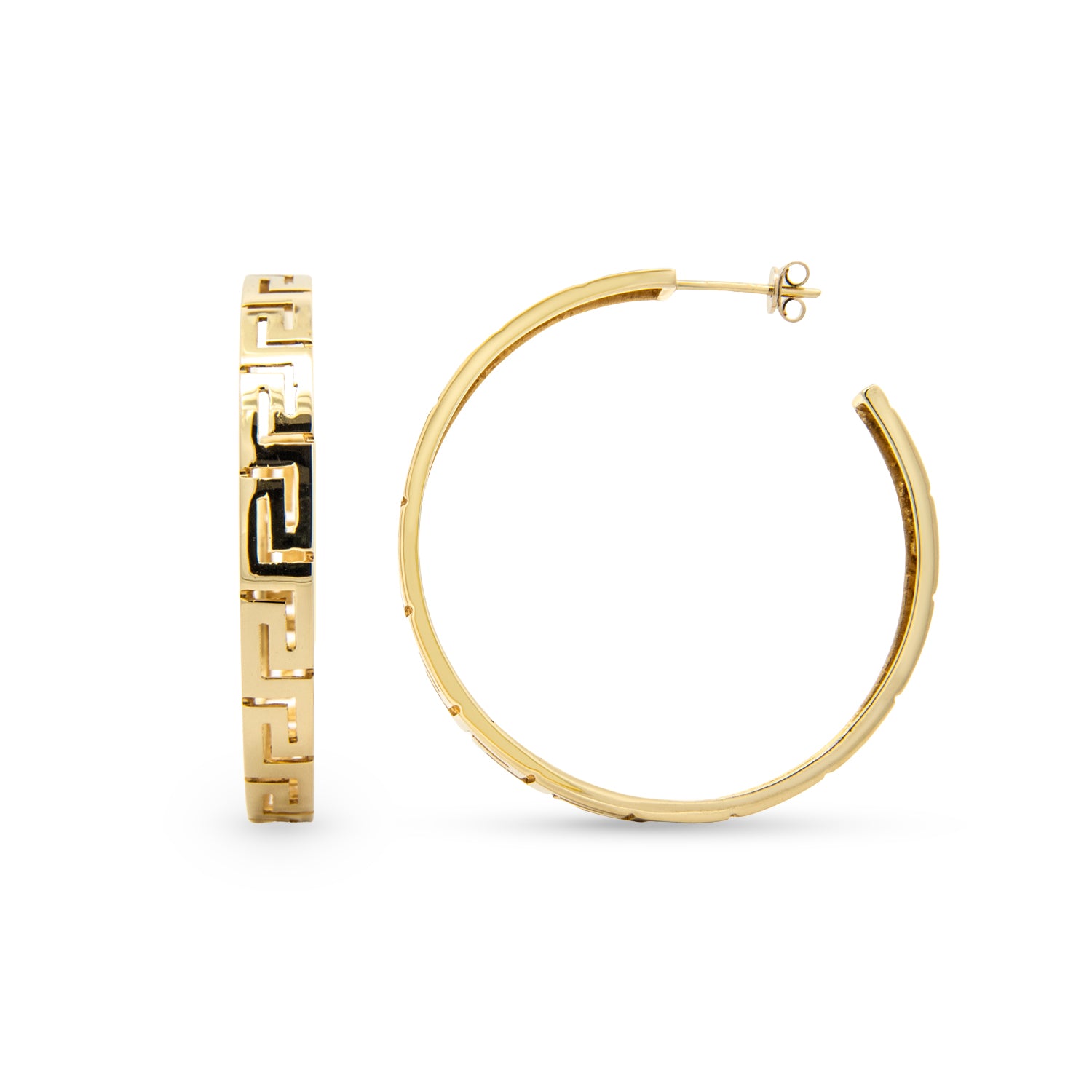 14K Yellow Gold 5.5 x 45 mm Greek Key Hoops