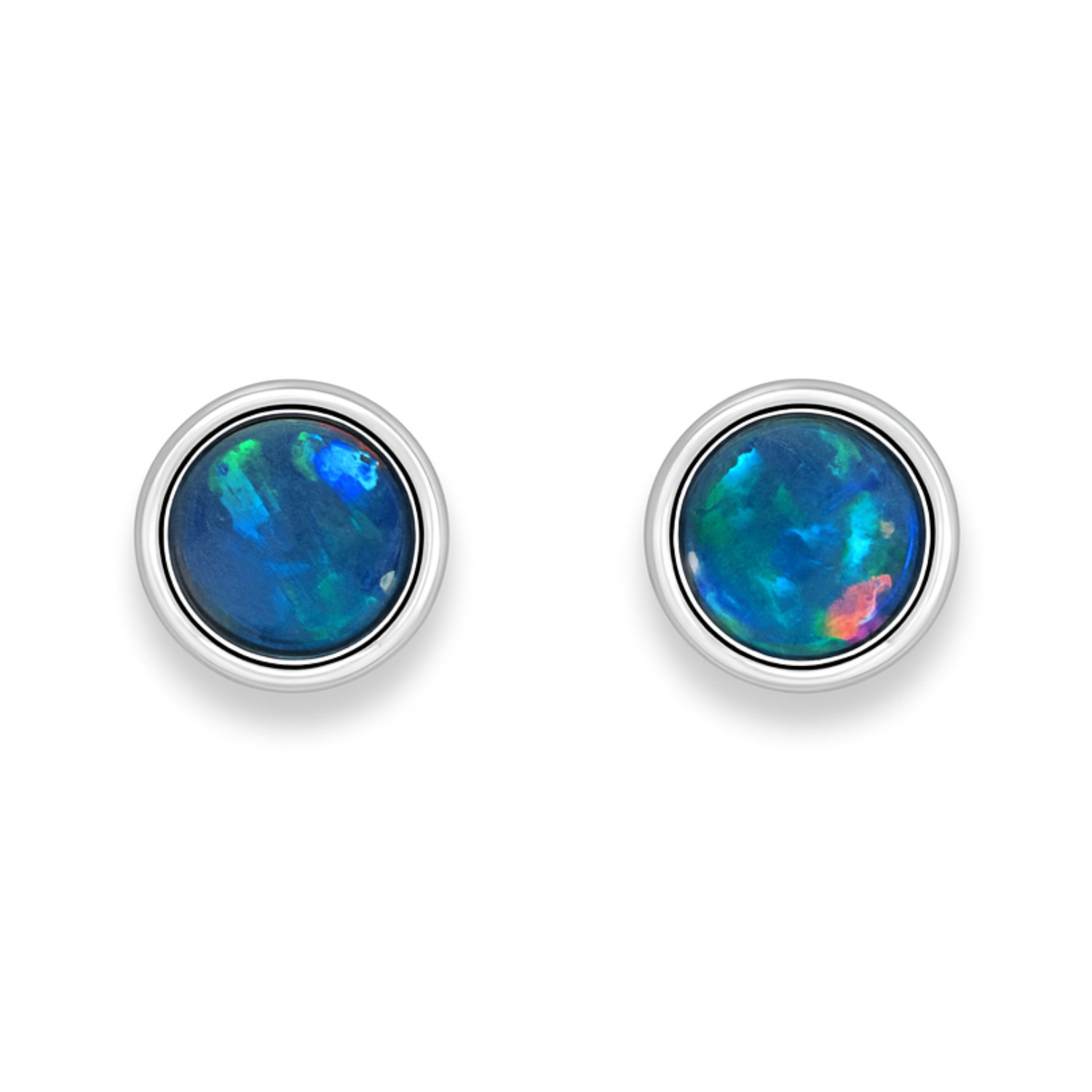 Sterling silver stud earrings glued with two 4 mm round opal doublets, equipped with friction style backs.