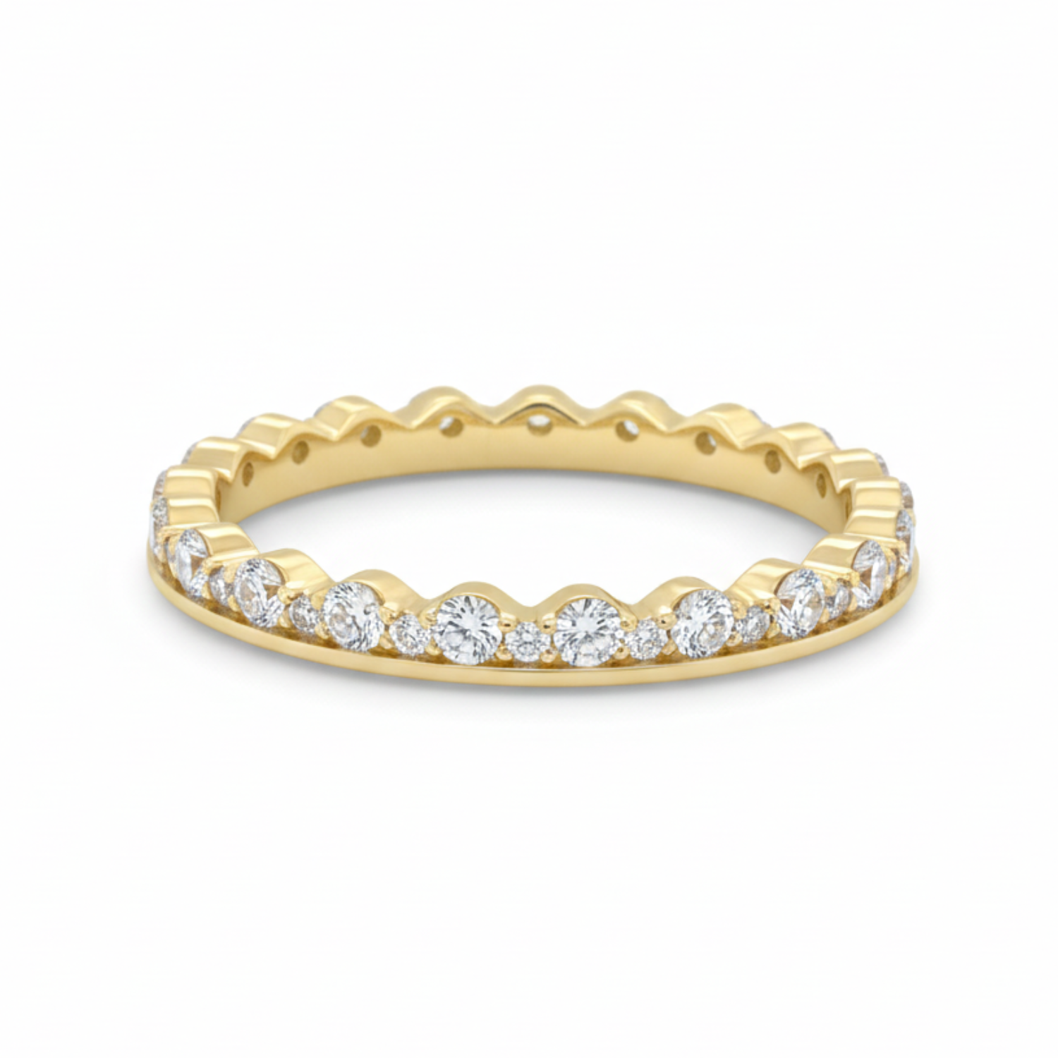 14 karat yellow gold alternating nesting ring set with 42 round brilliant cut diamonds at 0.47 carat total weight with F - G color and VS1 - VS2 clarity.Details