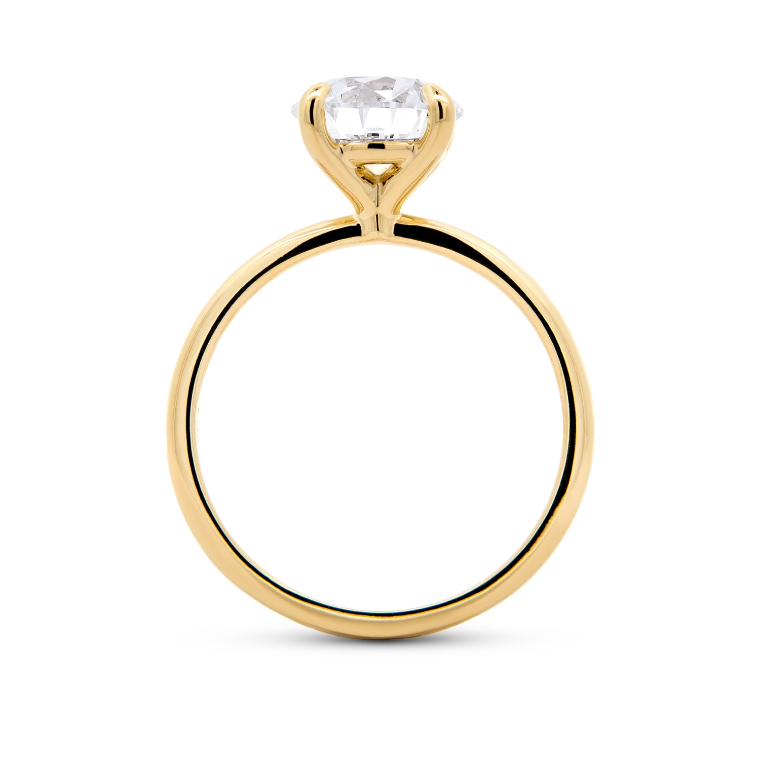 This 14K yellow gold solitaire engagement ring features a stunning round brilliant cut lab grown diamond held securely in a classic four-prong setting. The smooth, rounded shank adds a refined touch while ensuring a comfortable fit. With its elegant simplicity and exceptional craftsmanship, this design highlights the diamond’s brilliance from every angle.Details