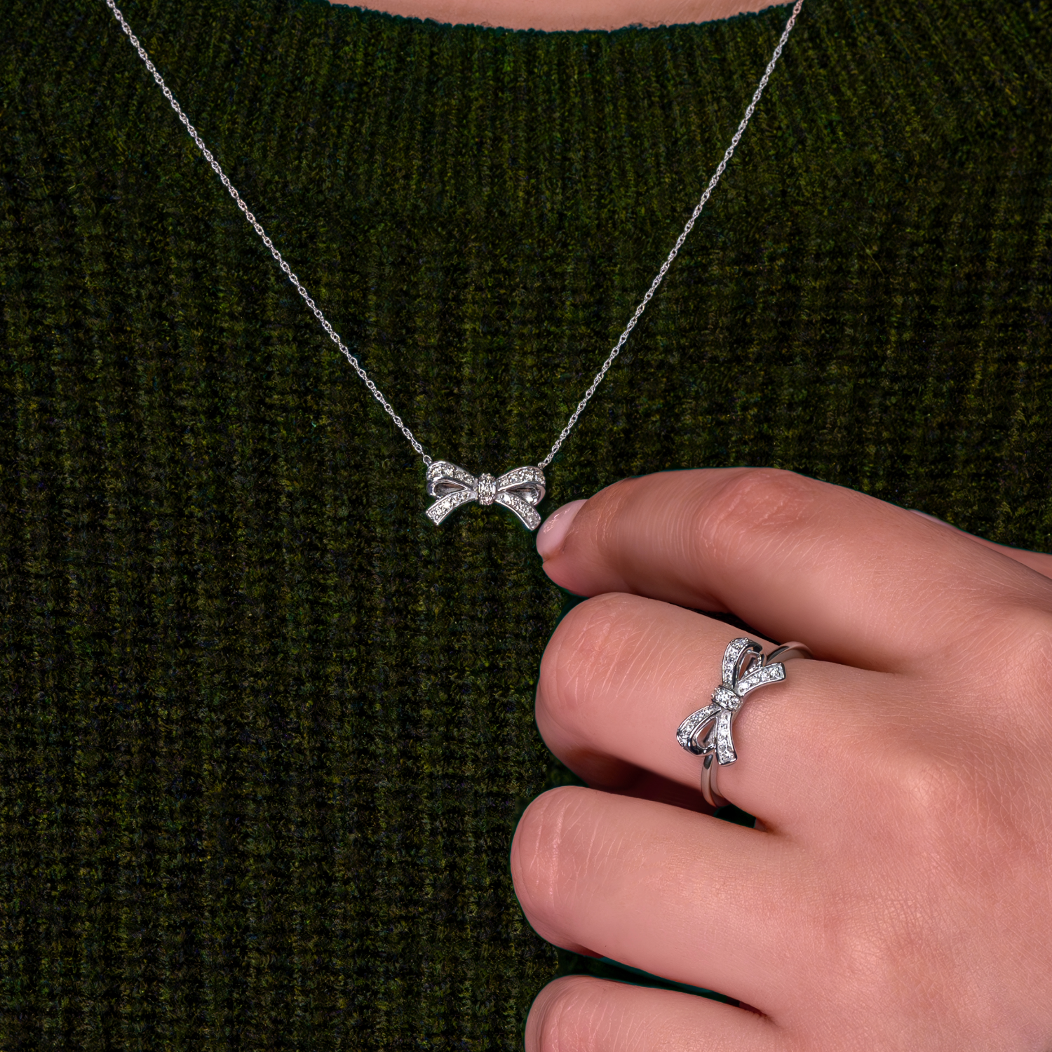 10K White Gold 0.14 ctw Diamond Bow Ring