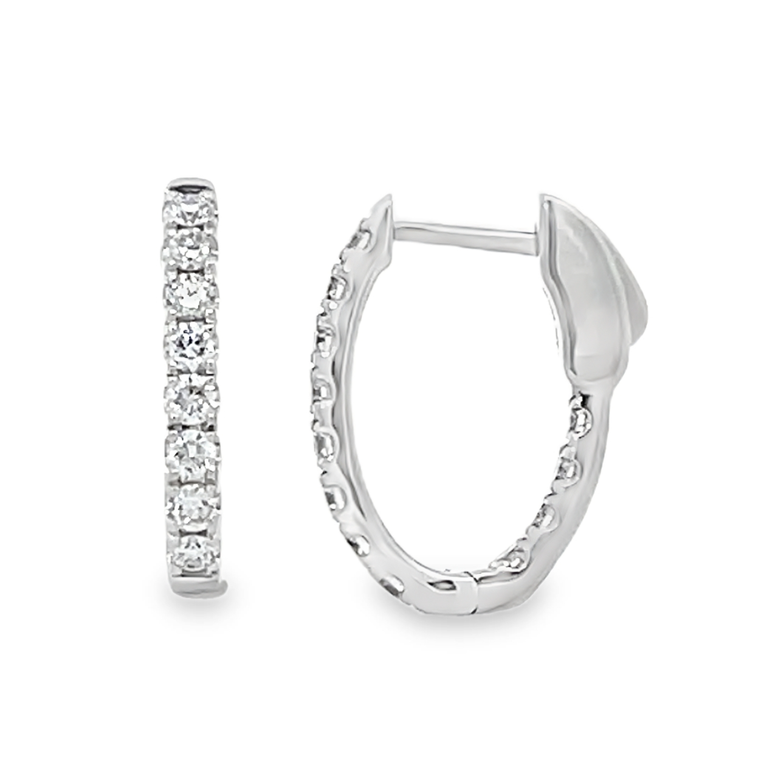 A refined take on a timeless classic, these 14K white gold oval hoop earrings feature dazzling diamonds set both inside and out for maximum brilliance from every angle. The elegant oval shape provides a sleek and sophisticated look, making them perfect for any occasion.