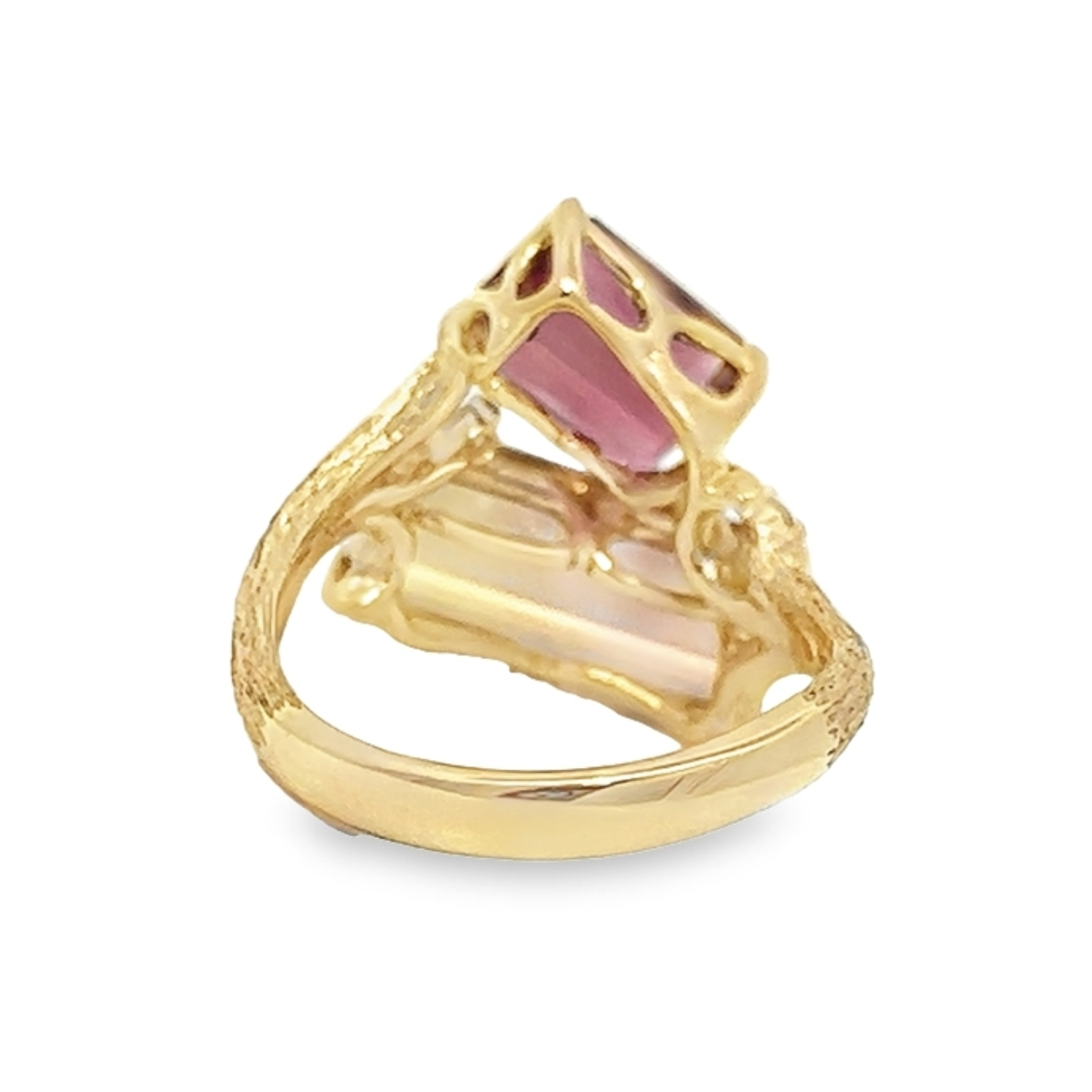 14K Yellow Gold Bark Motif Multicolored Tourmaline and Diamond Fashion Ring