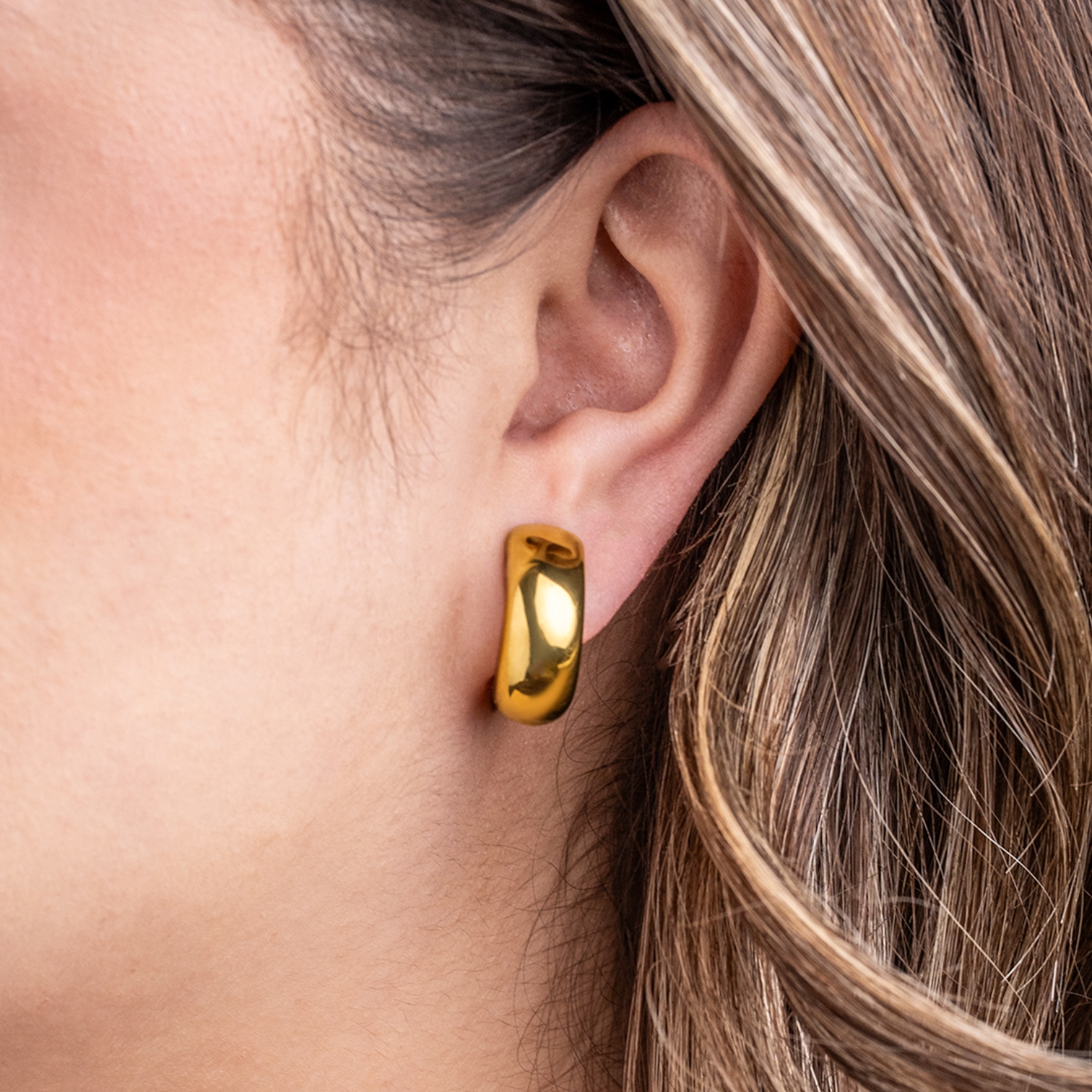 These elegant estate earrings are crafted in 18K yellow gold and feature a classic puffed hoop design. Their smooth, high-polish finish gives them a bold yet refined look, perfect for adding a touch of sophistication to any outfit.Details
