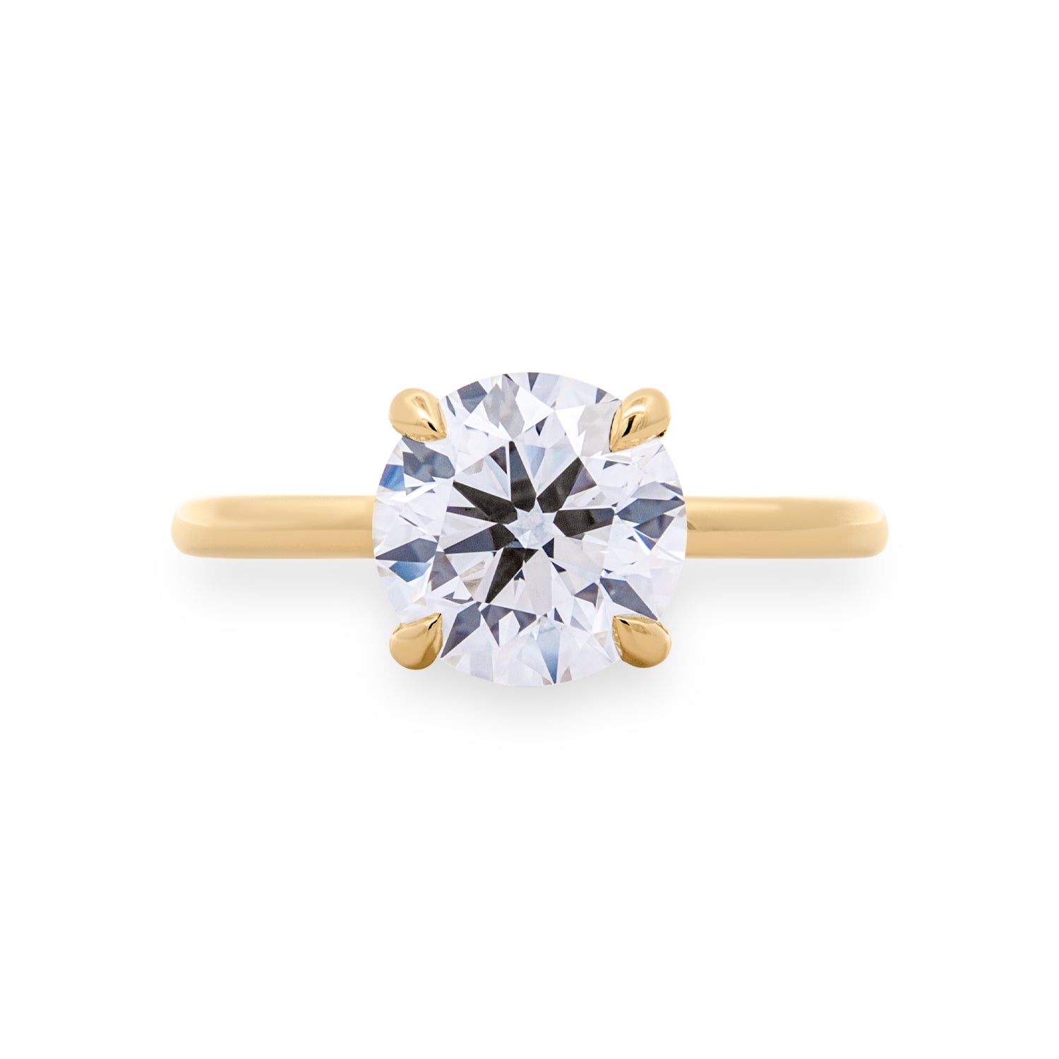 This 14K yellow gold solitaire engagement ring features a stunning round brilliant cut lab grown diamond held securely in a classic four-prong setting. The smooth, rounded shank adds a refined touch while ensuring a comfortable fit. With its elegant simplicity and exceptional craftsmanship, this design highlights the diamond’s brilliance from every angle.Details