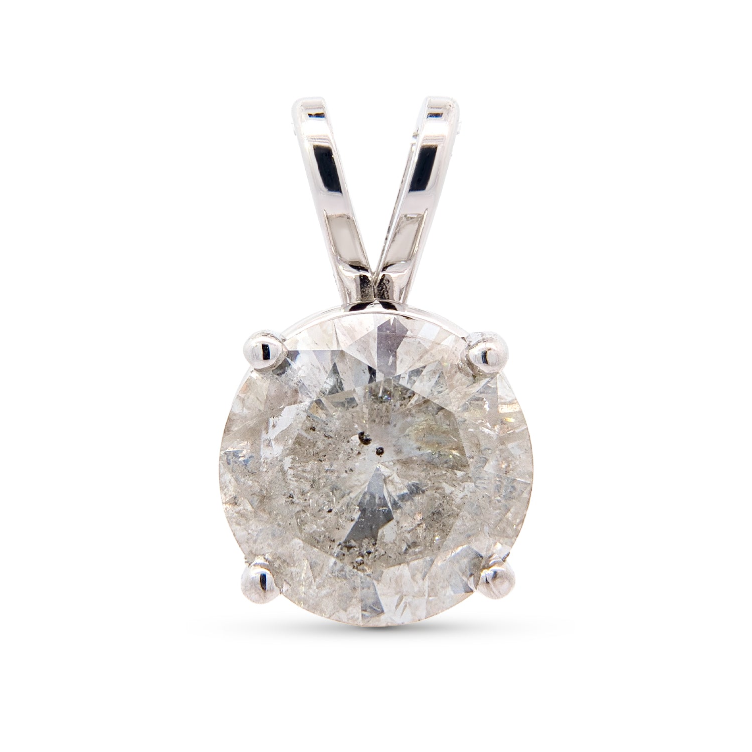 14K White Gold 4.25 carat Round Earth-Mined Diamond Solitaire Pendant