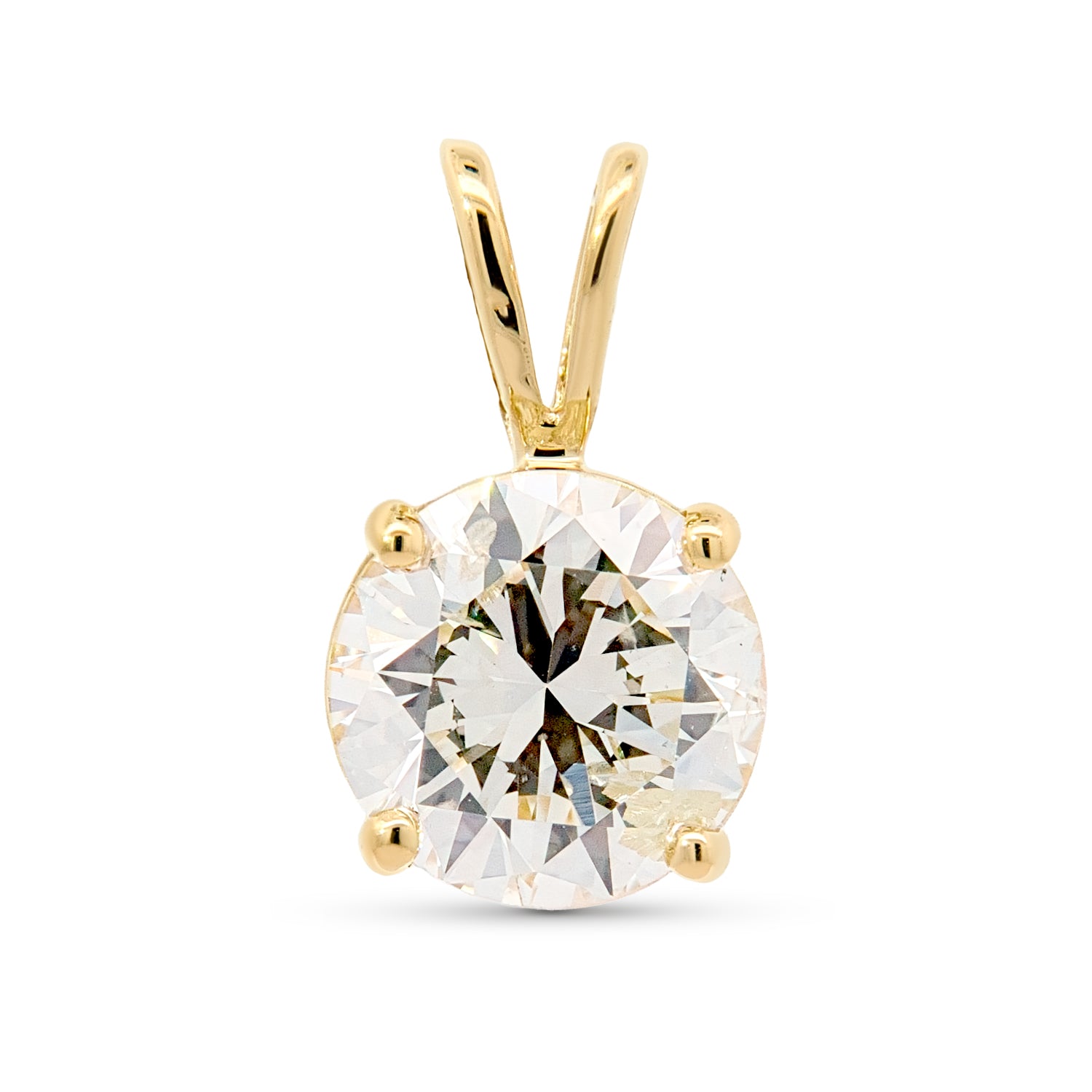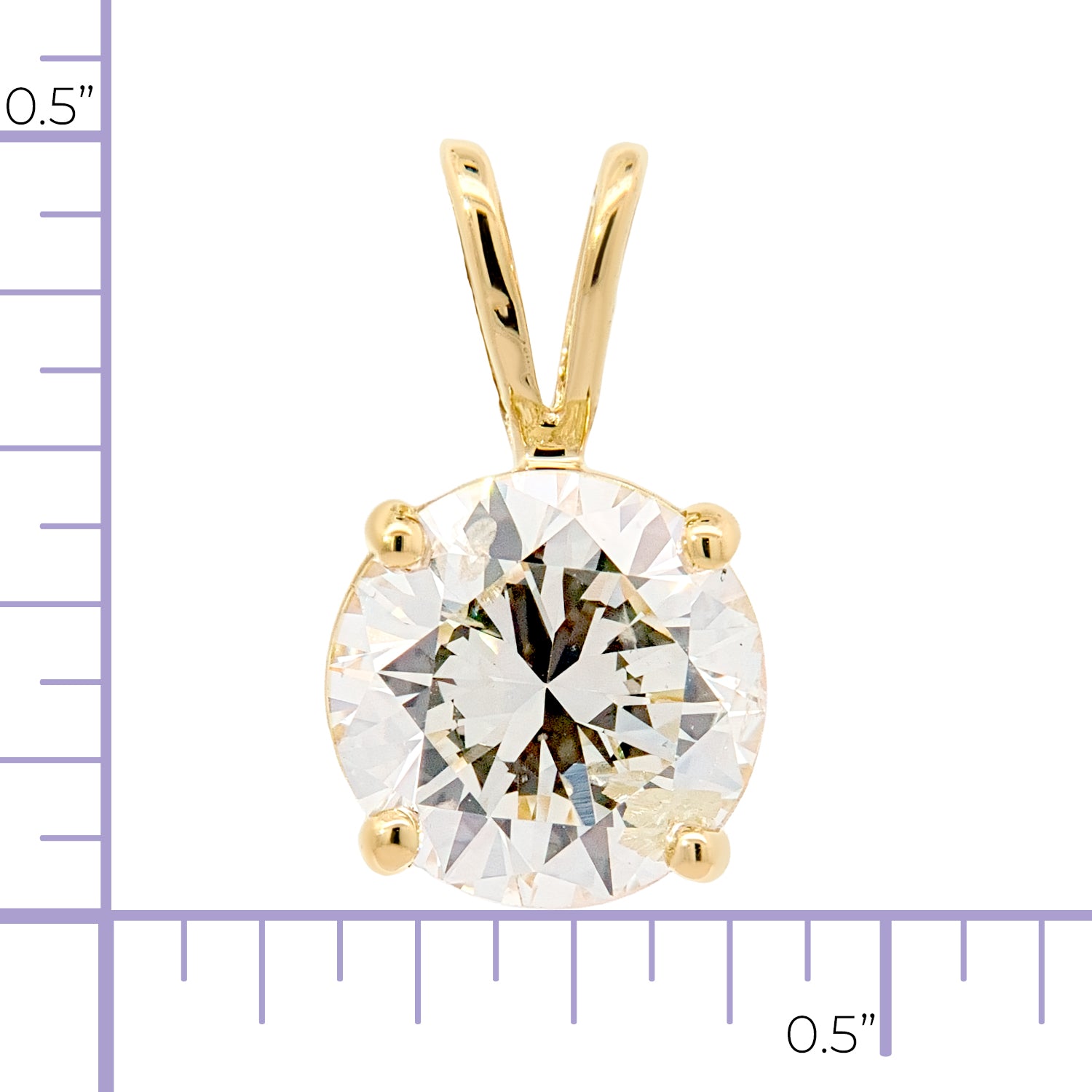 14K Yellow Gold 1.45 carat Round Earth-Mined Diamond Solitaire Pendant