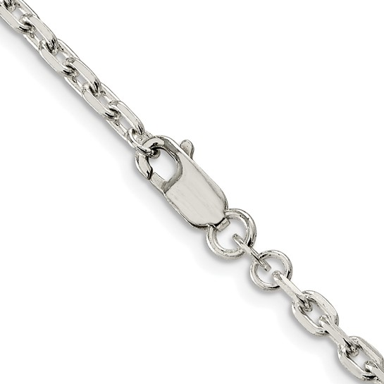 22" sterling silver rhodium-plated 3.25 mm beveled oval cable chain, equipped with a lobster claw style clasp.Details