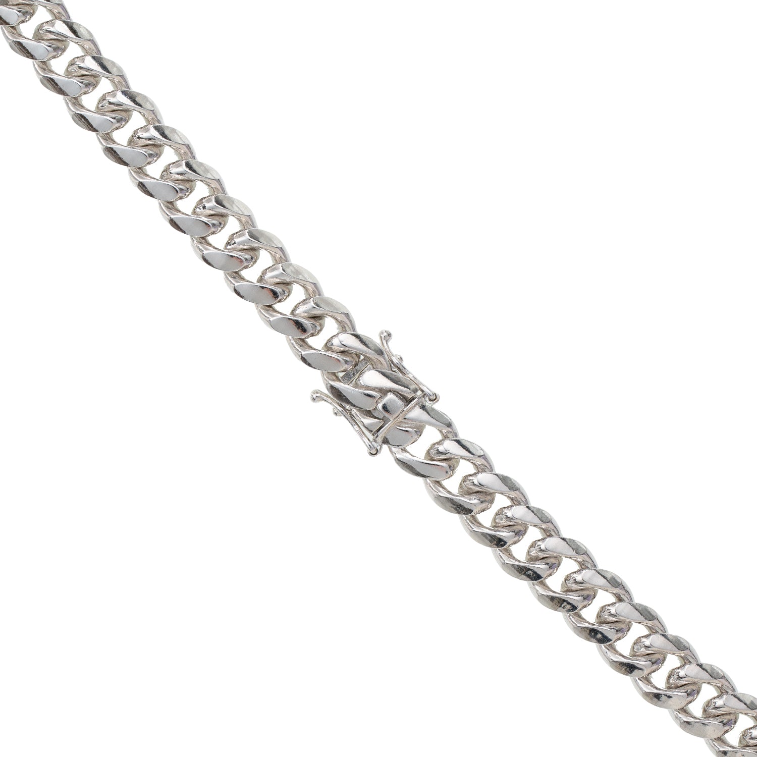 Crafted in sterling silver, this bold Miami Cuban chain features tightly interwoven links that create a sleek and polished look. Secured with a sturdy box clasp and two figure-eight safety mechanisms, this chain offers both style and durability, making it a standout addition to any collection.Details