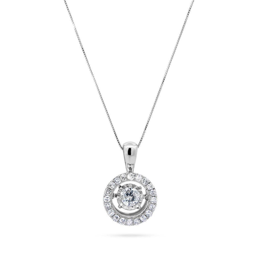 14K White Gold 1/2 ctw Halo Style Diamond Necklace