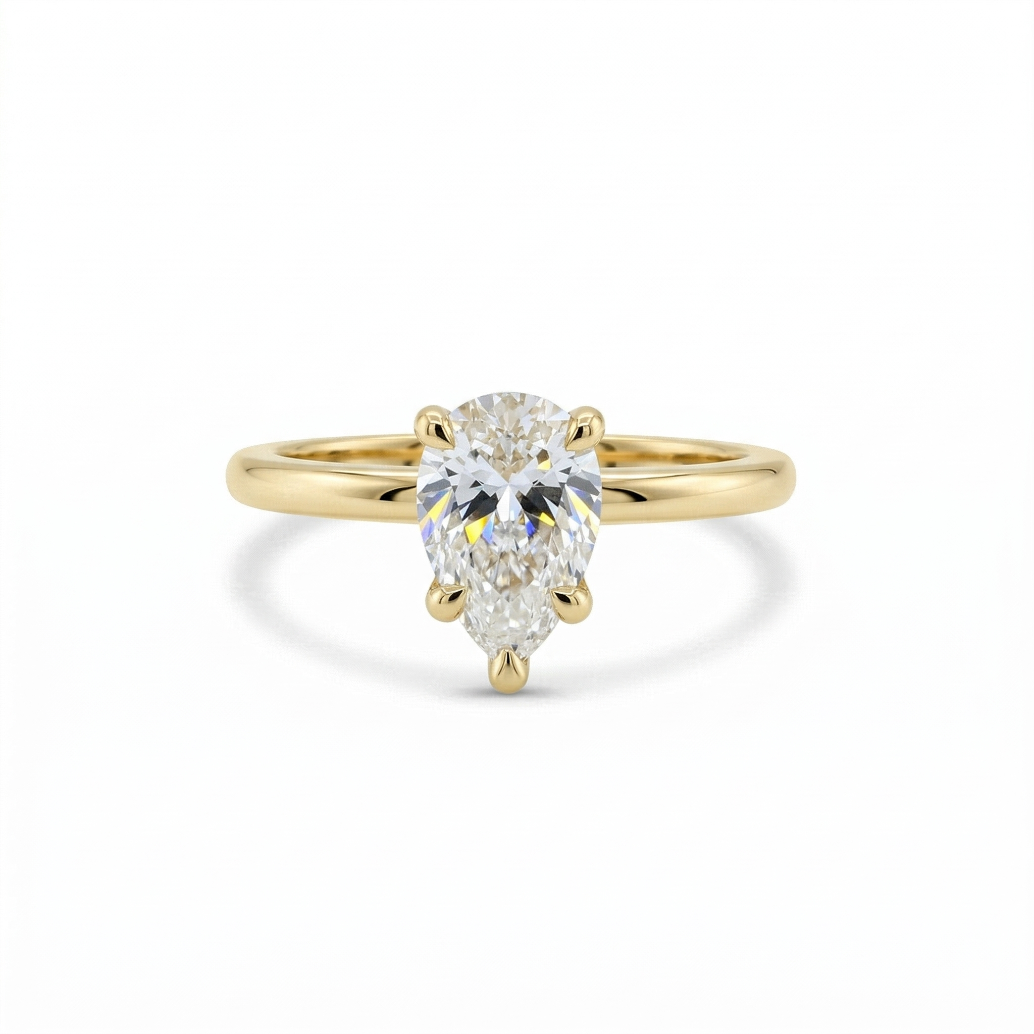 14K Yellow Gold Pear Shaped Lab-Grown Diamond Engagement Ring