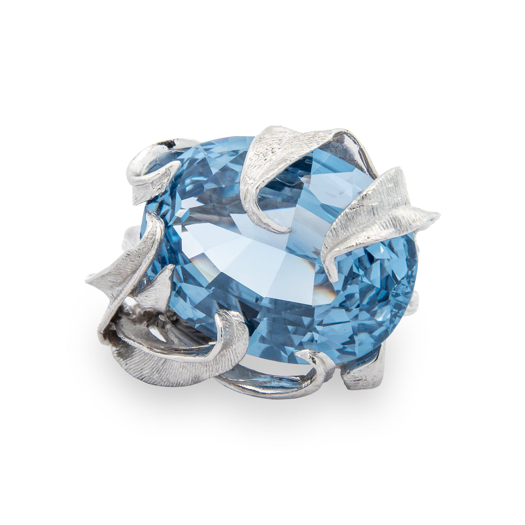 14K White Gold Nature Motif Swiss Blue Topaz Fashion Ring