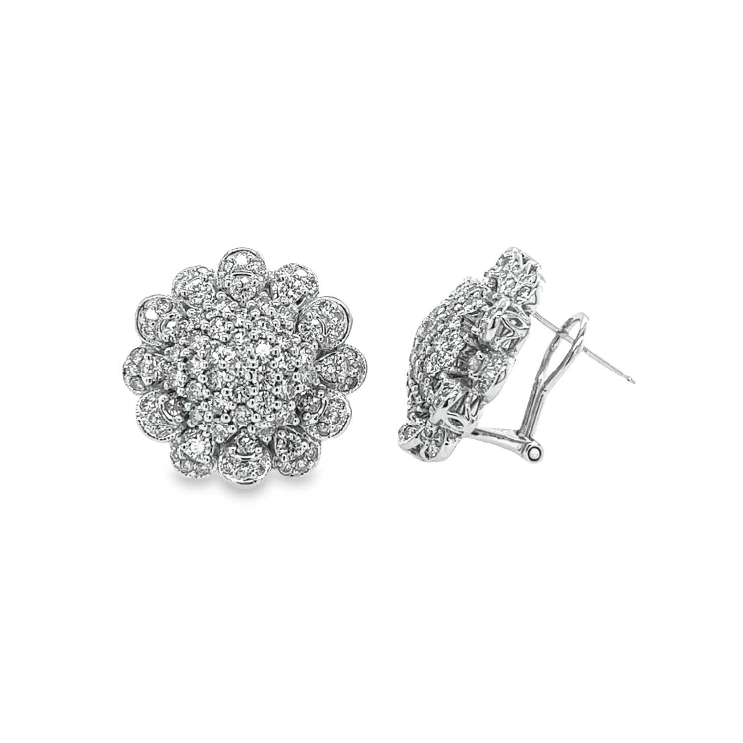 14K White Gold 3.5 ctw Floral Diamond Earrings
