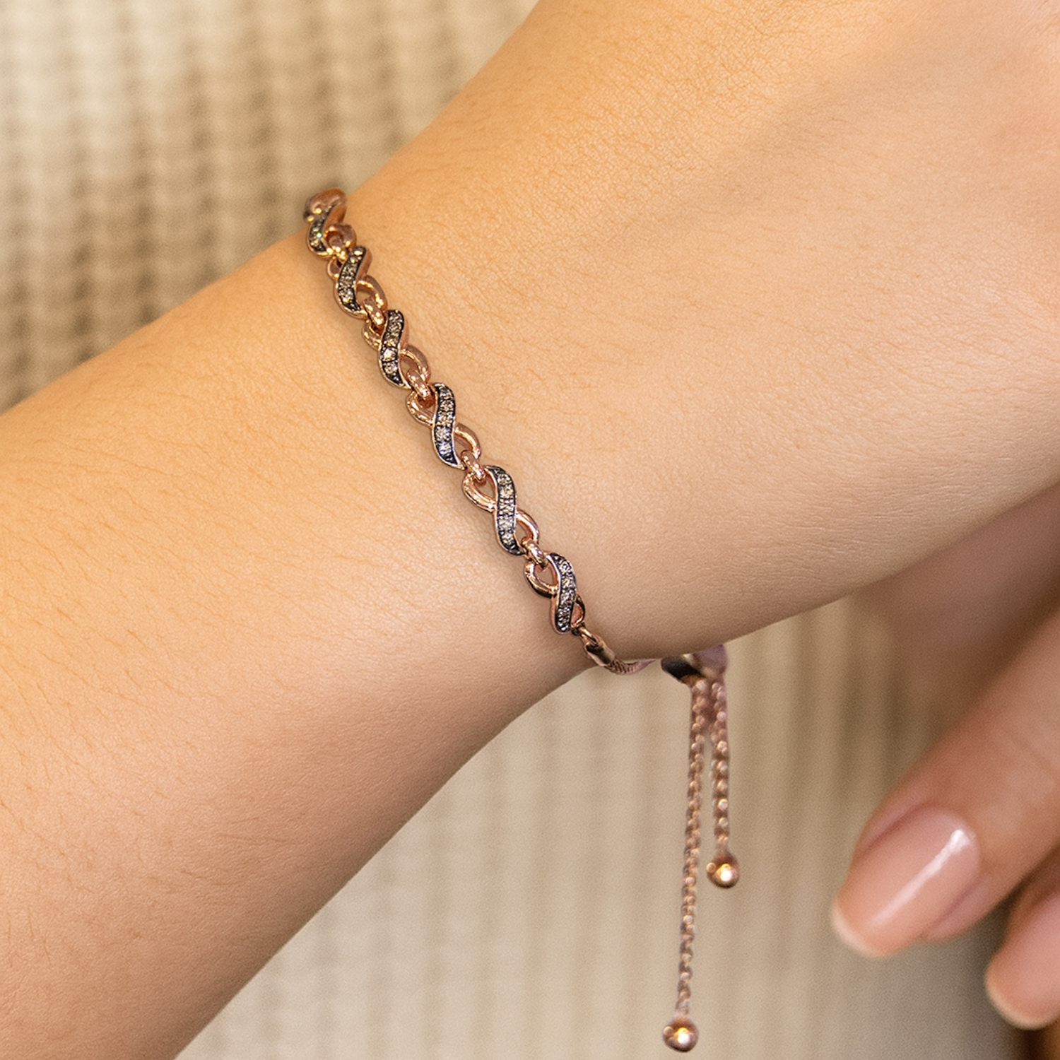 14K Rose Gold Brown Diamond Bolo Bracelet