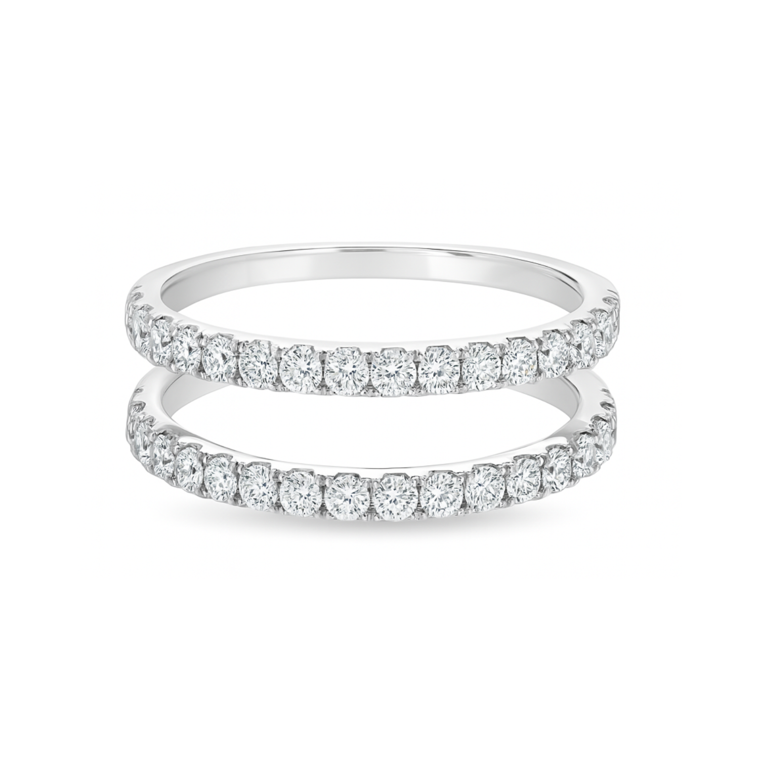 14K White Gold 0.85 ctw French V-Split Diamond Ring Guard