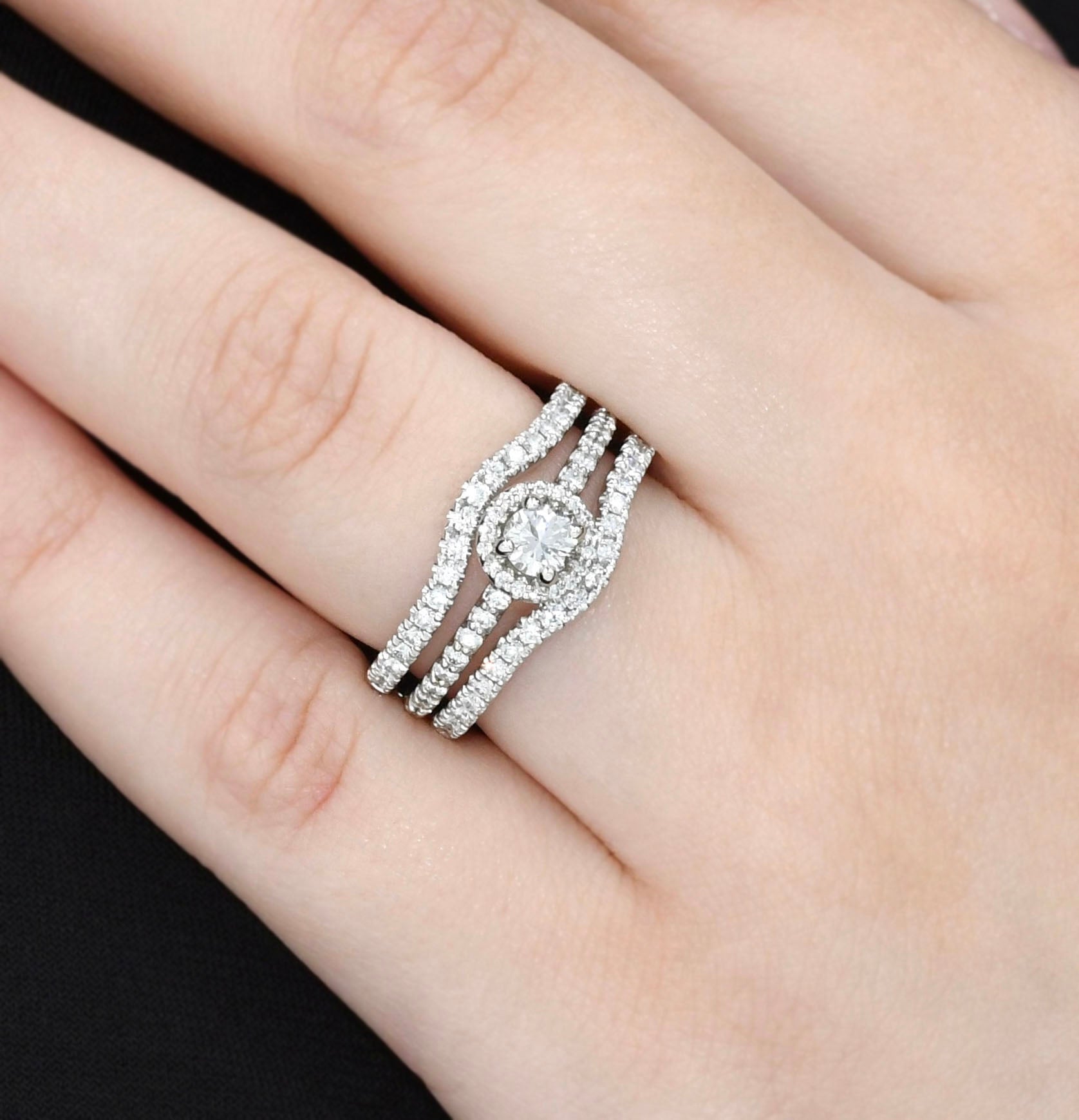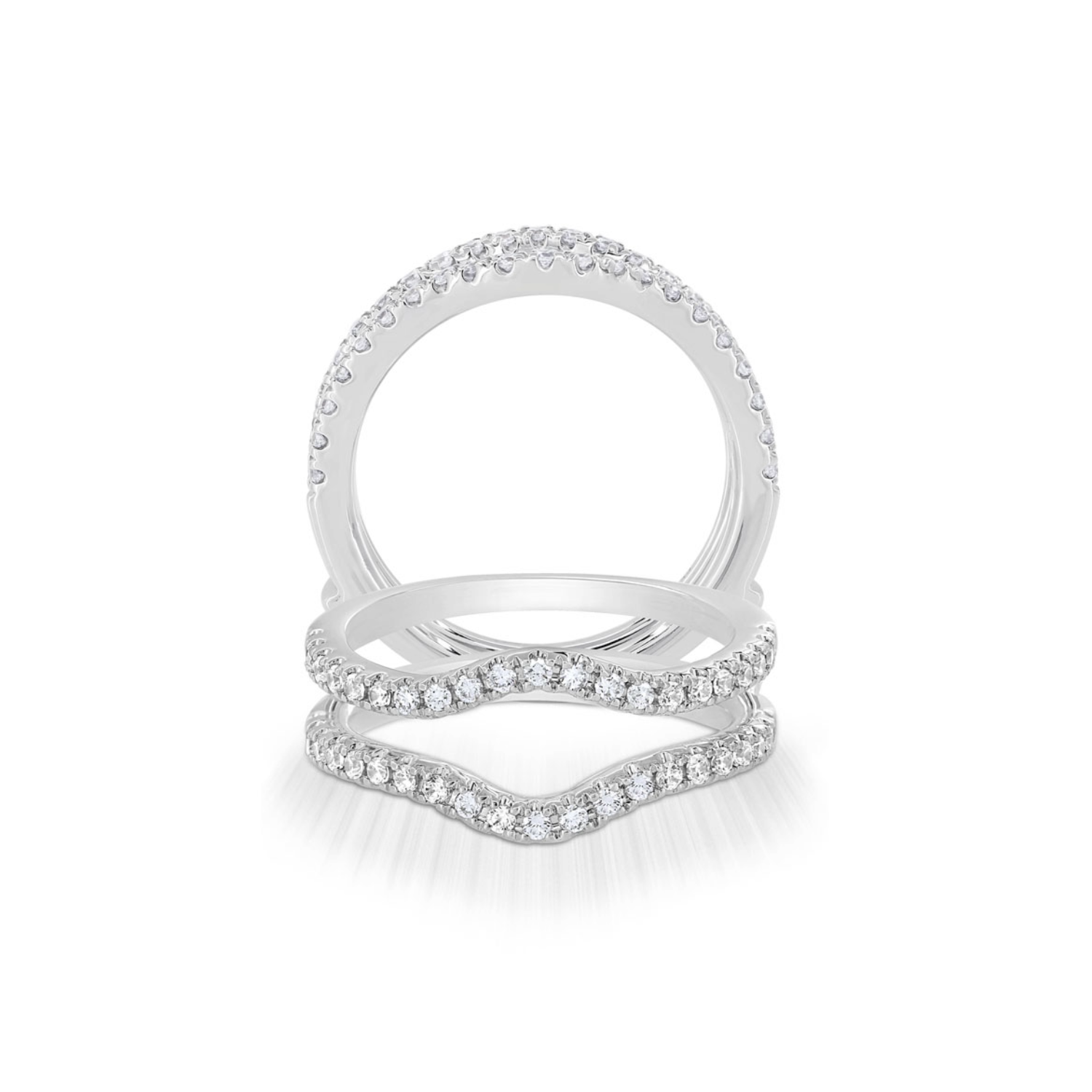 With a touch of glamour, this 14K white gold diamond contour ring guard wraps your solitaire or bridal set in a sparkling embrace. Expertly set with shimmering diamonds along its contoured design, this guard adds an extra layer of sparkle. It's an elegant and timeless accessory that enhances the beauty of your existing rings, providing a stunning showcase for your most cherished pieces.Details