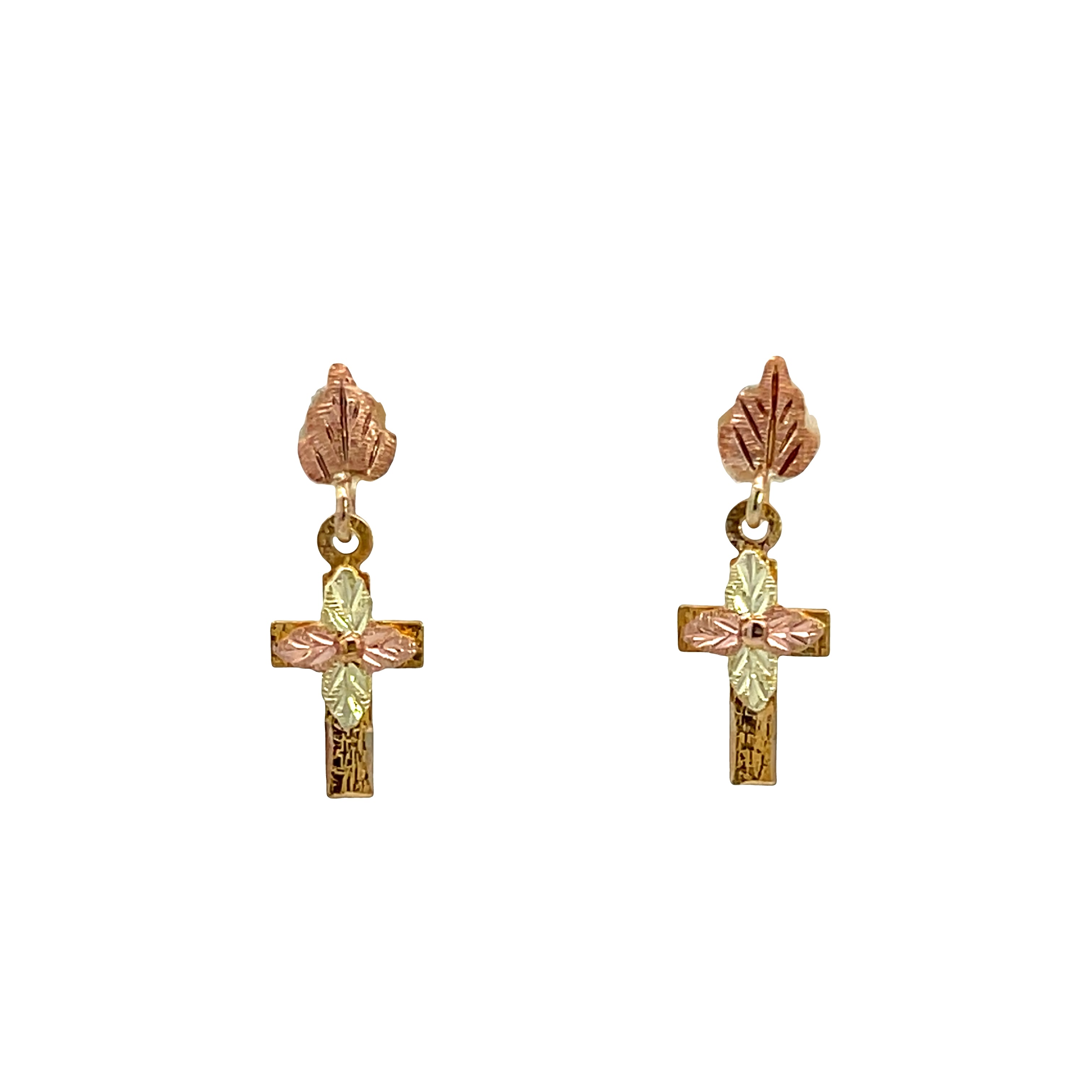 10K Tri Tone Black Hills Gold Dangle Cross Earrings