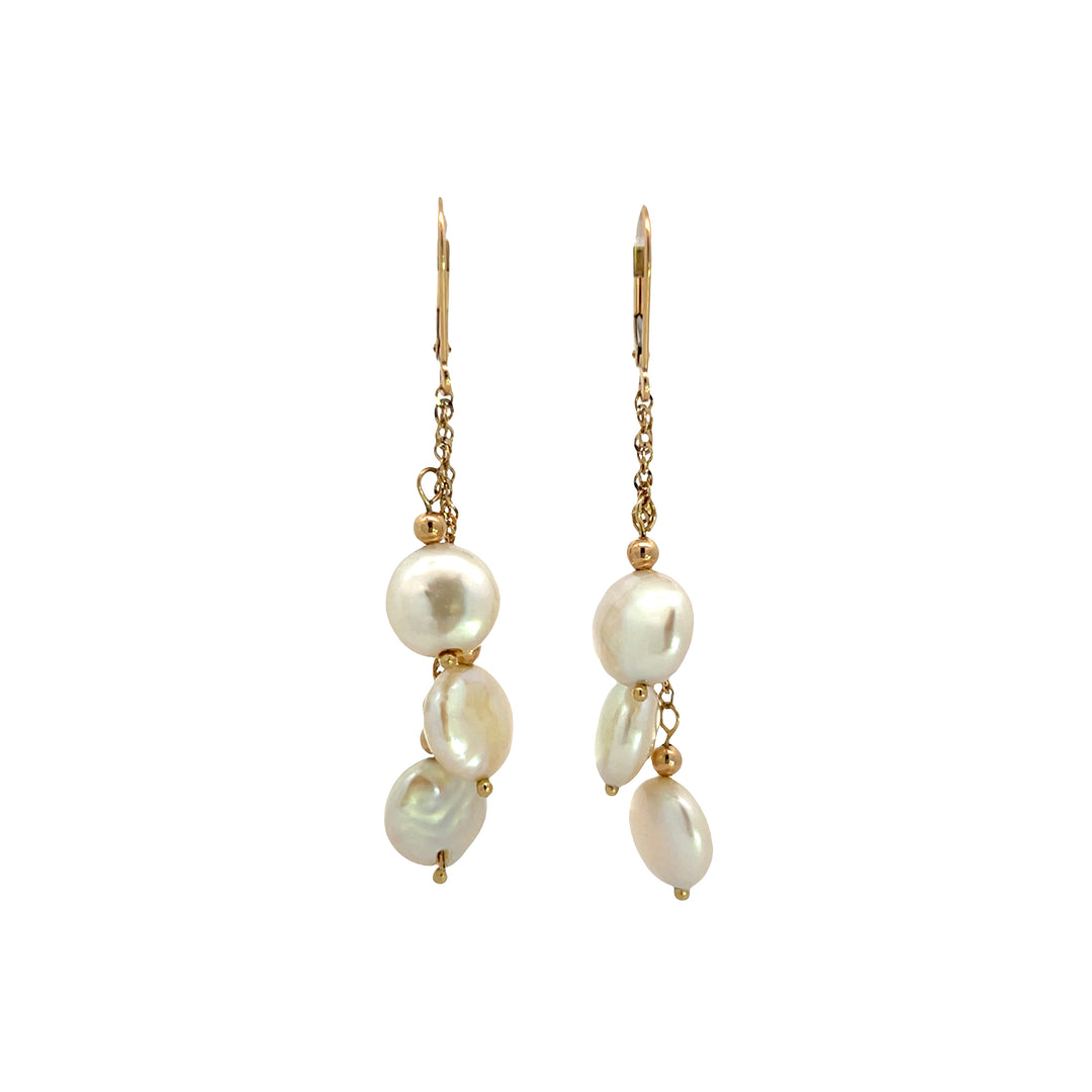 10K Yellow Gold Cultured Freshwater Coin Pearl Dangle Earrings