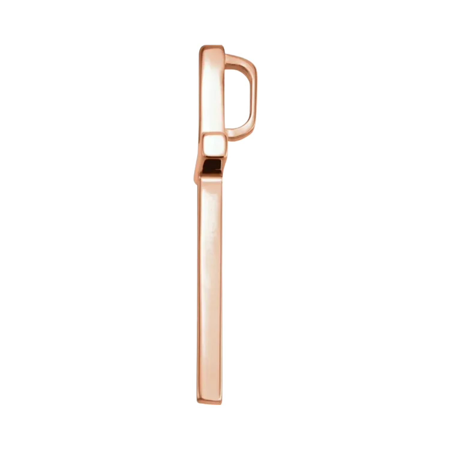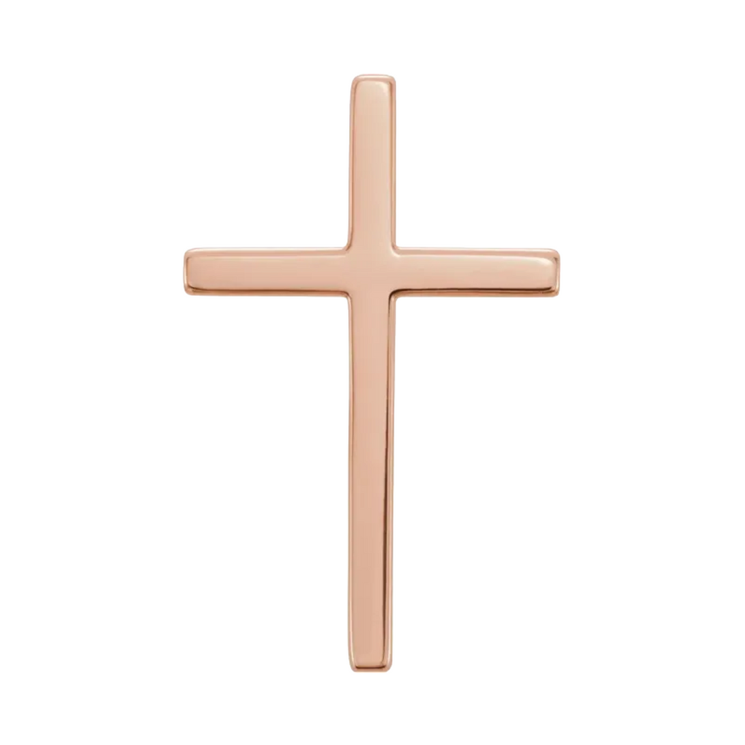 This 14K rose gold pendant features a sleek, polished cross design with smooth lines and a modern silhouette, making it a refined and meaningful piece for everyday wear.Details