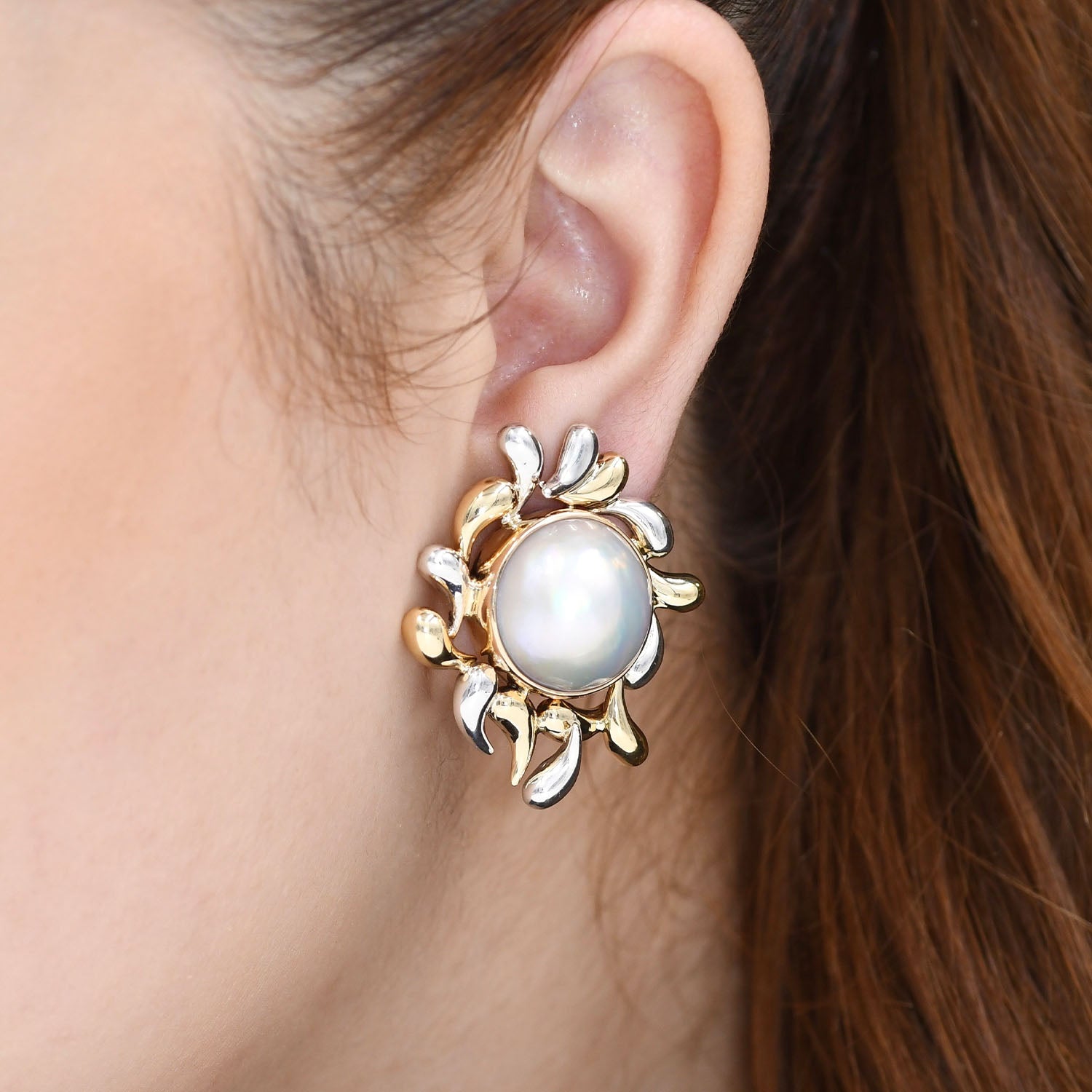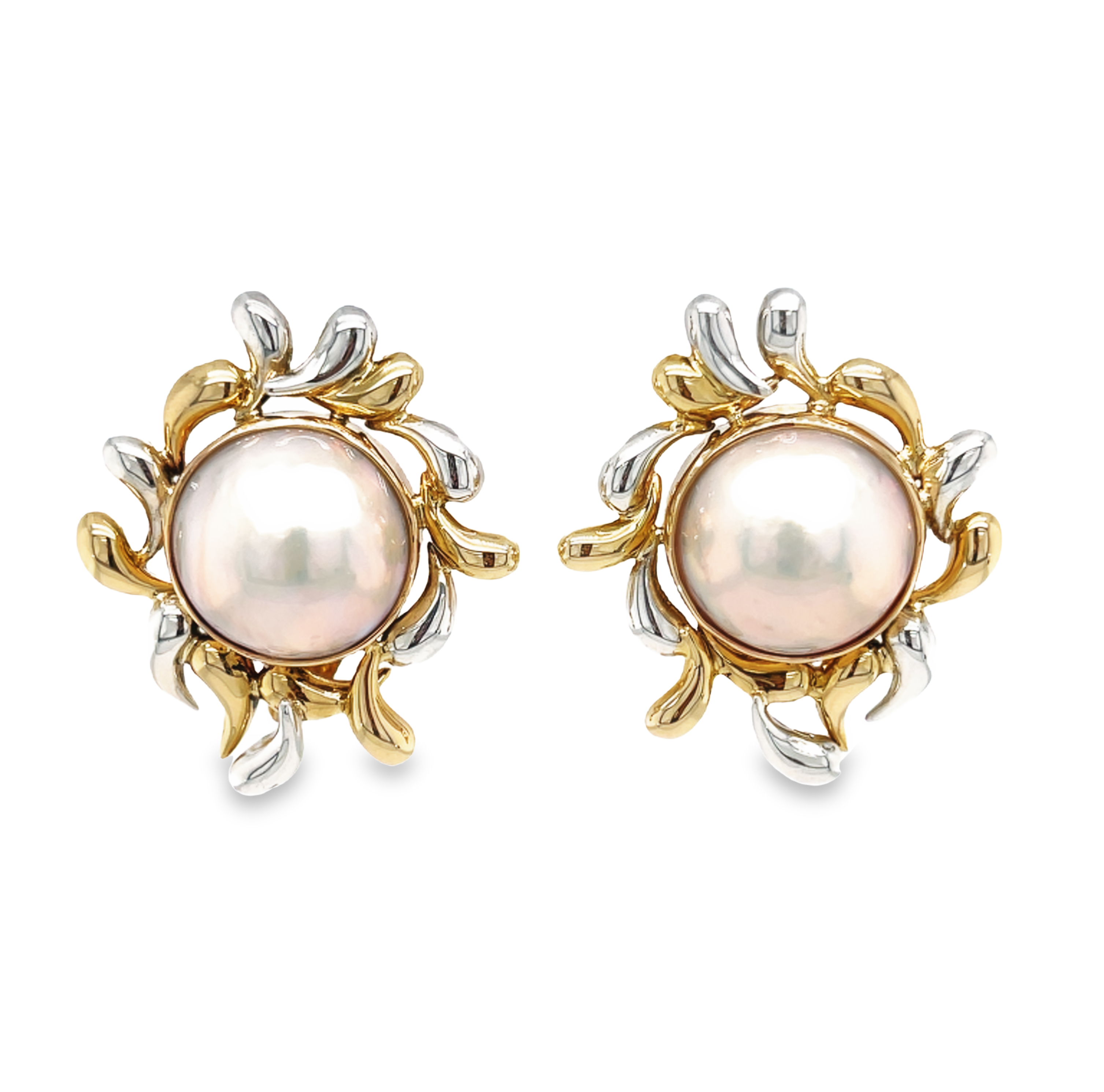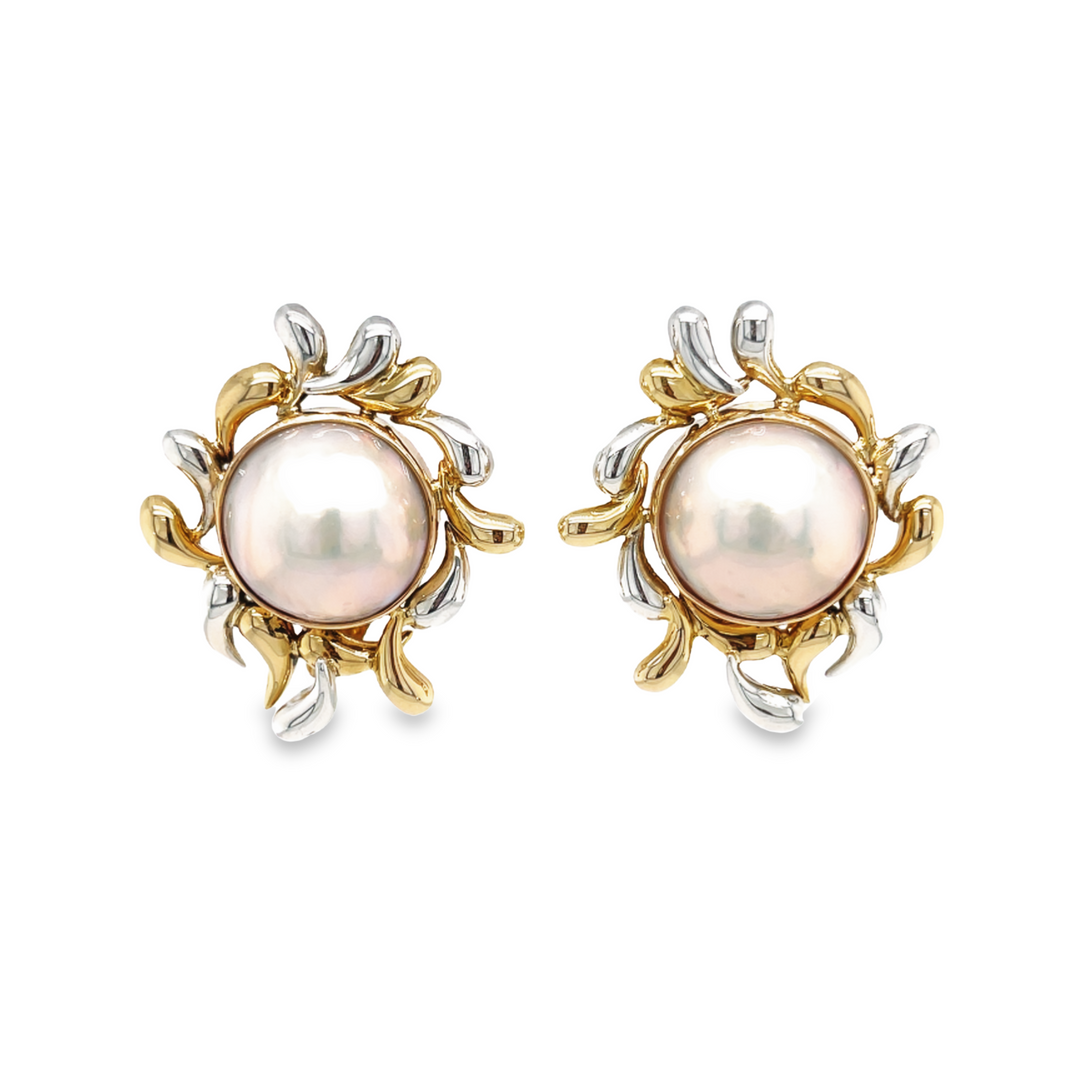 14K Two Tone Mabé Pearl Earrings
