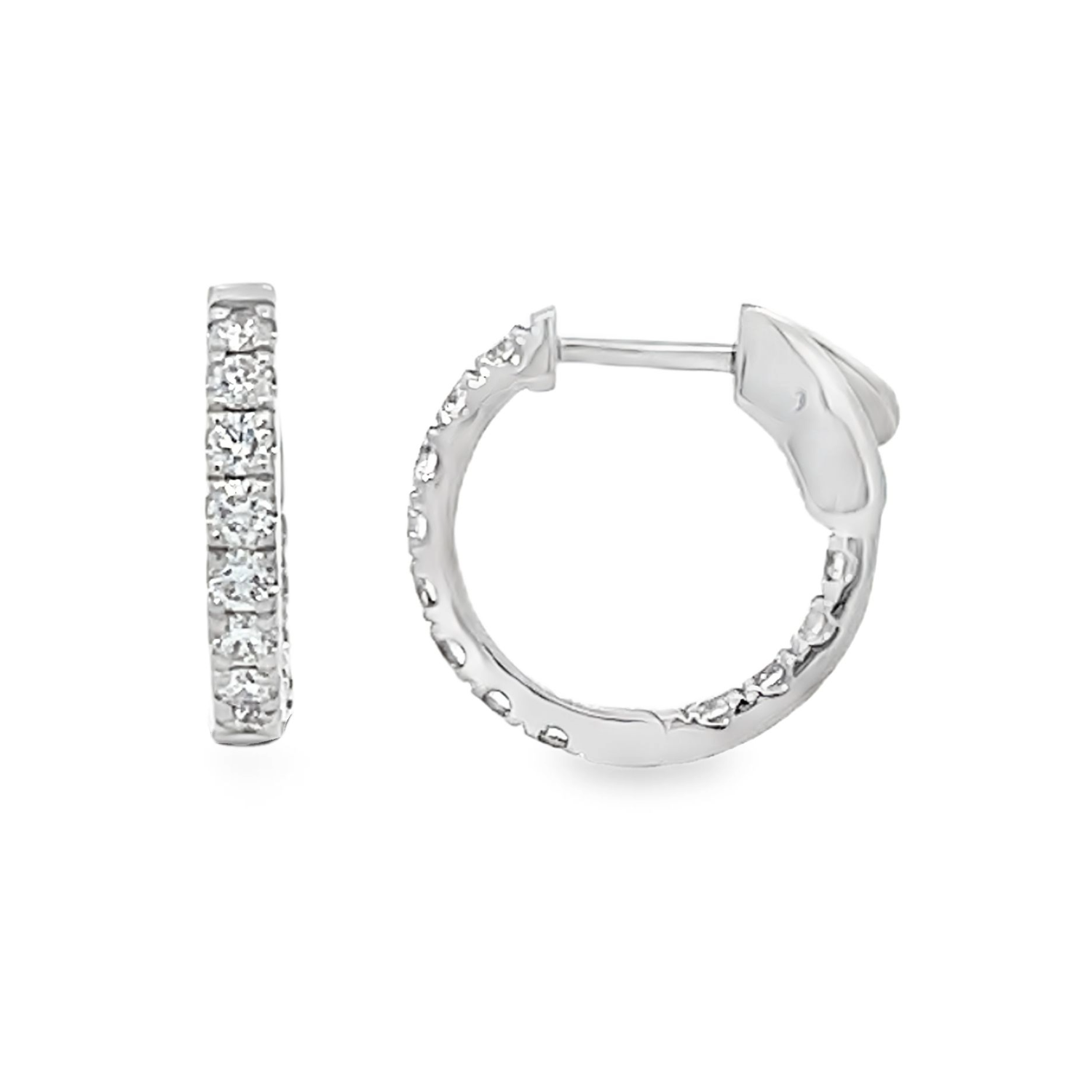 Designed for brilliance from every angle, these 14K white gold hoop earrings feature diamonds set both inside and out for a radiant, continuous sparkle. A timeless choice for adding sophistication to any look, these hoops are perfect for both everyday elegance and special occasions.Details