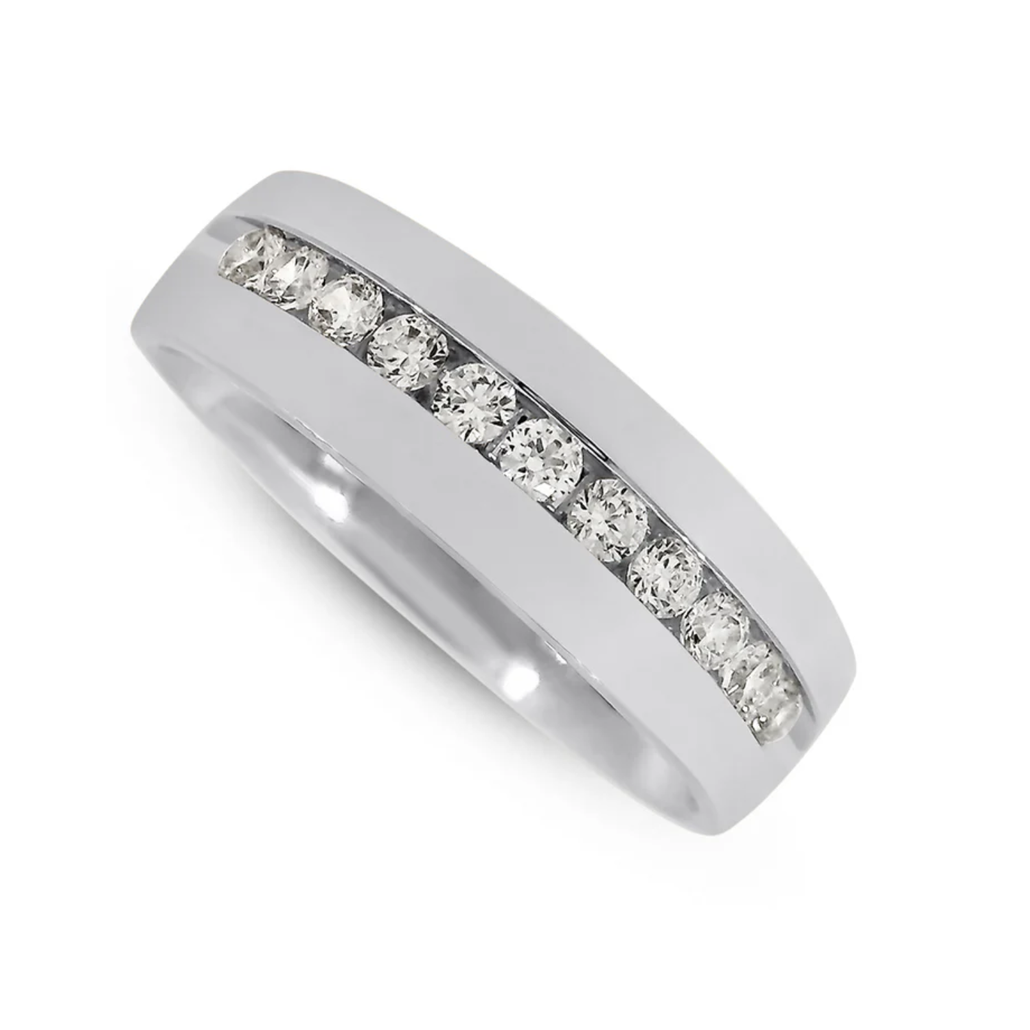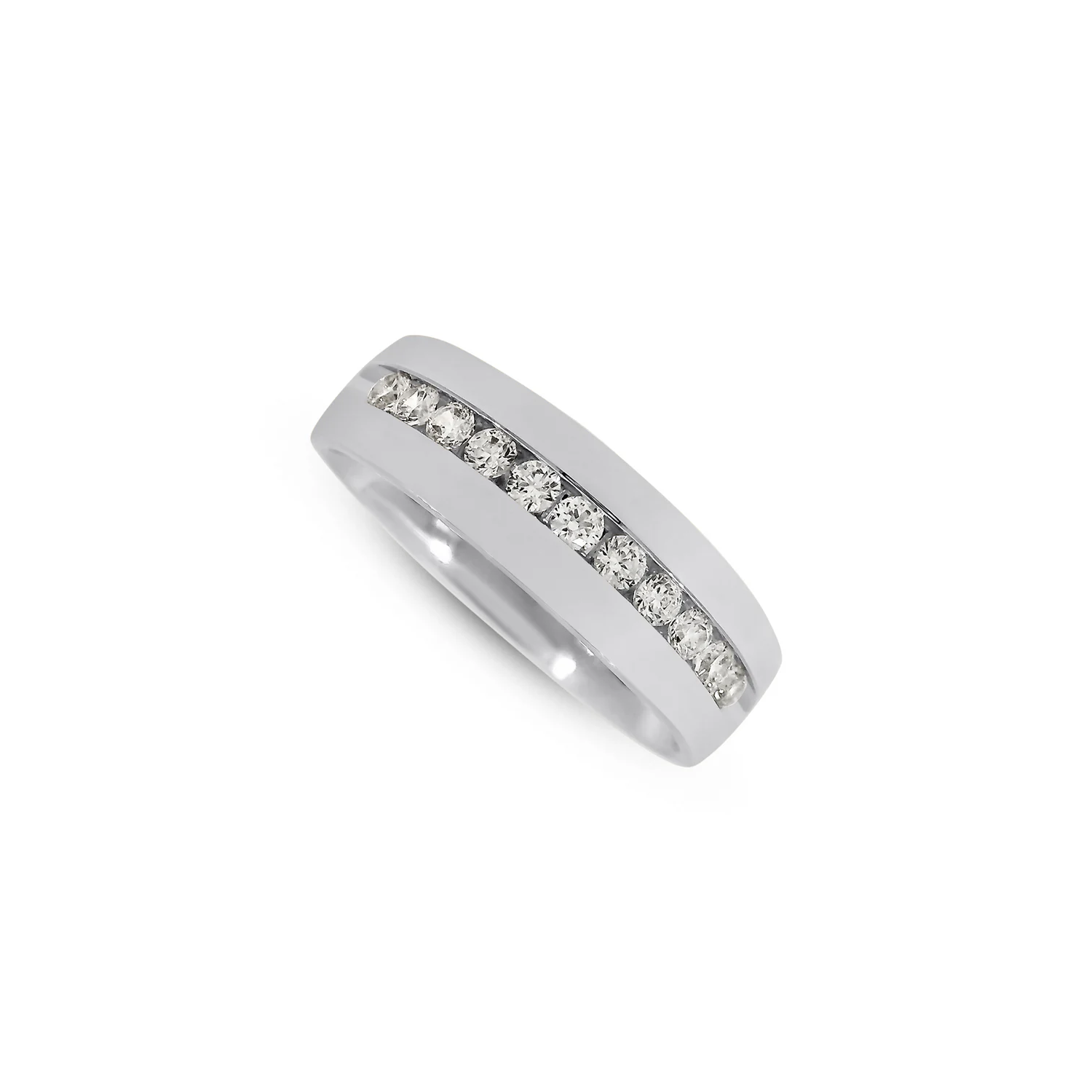 14 karat white gold wedding band set with 11 round brilliant cut lab grown diamonds at 0.55 carat total weight with F - G color and VS1 - SI1 clarity.Details