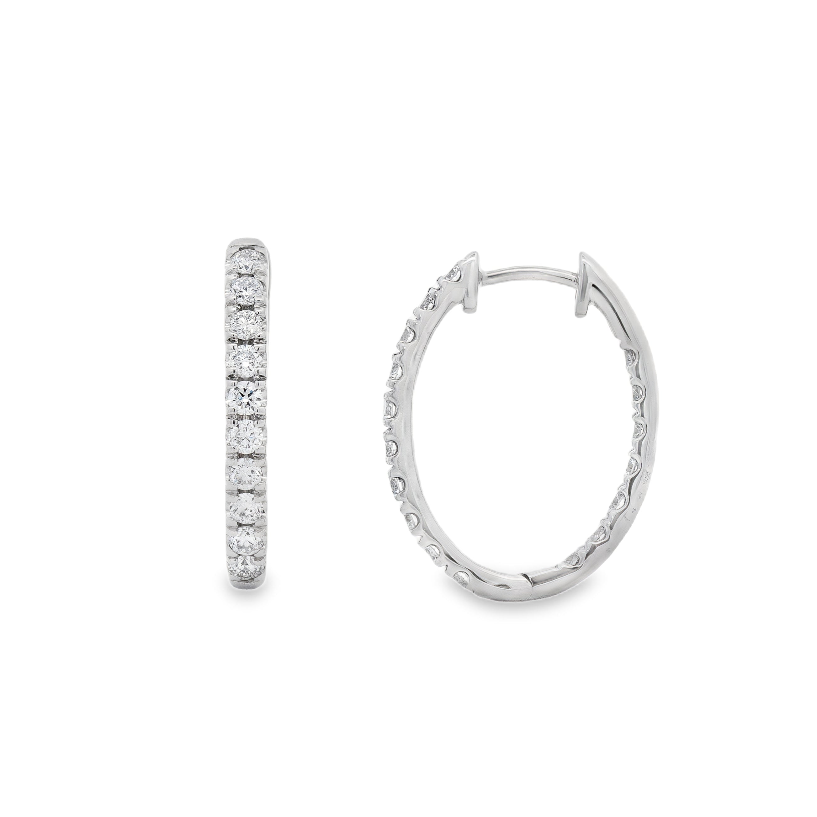 These 14K white gold in-and-out hoop earrings are adorned with round brilliant cut diamonds along the front and inner curves. Their polished finish and timeless design make them a radiant go-to for both day and night.Details