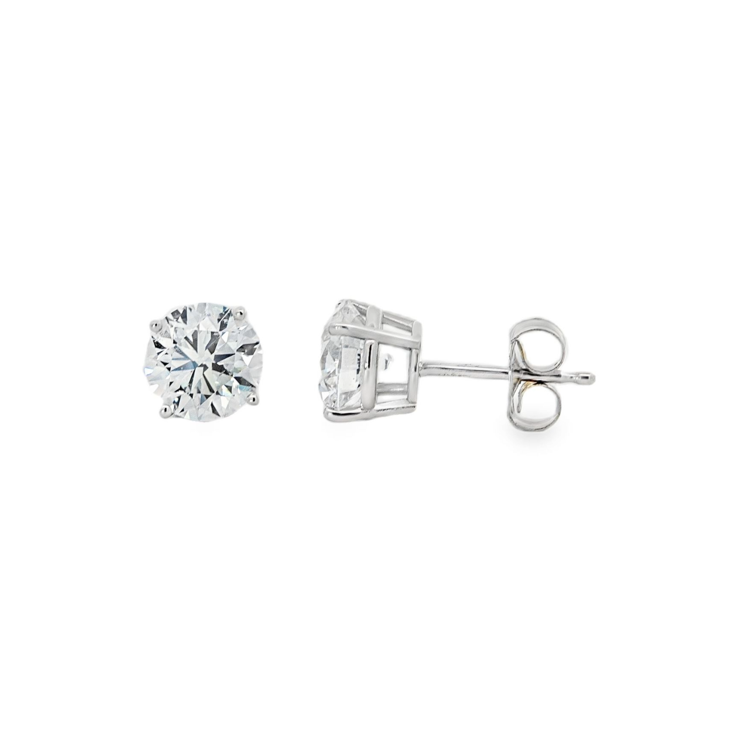 These 14K white gold stud earrings are set with round brilliant cut lab grown diamonds in a classic four-prong setting. The simple yet timeless design makes them a versatile addition to any jewelry collection. Finished with secure friction backs, they offer both elegance and everyday ease.Details