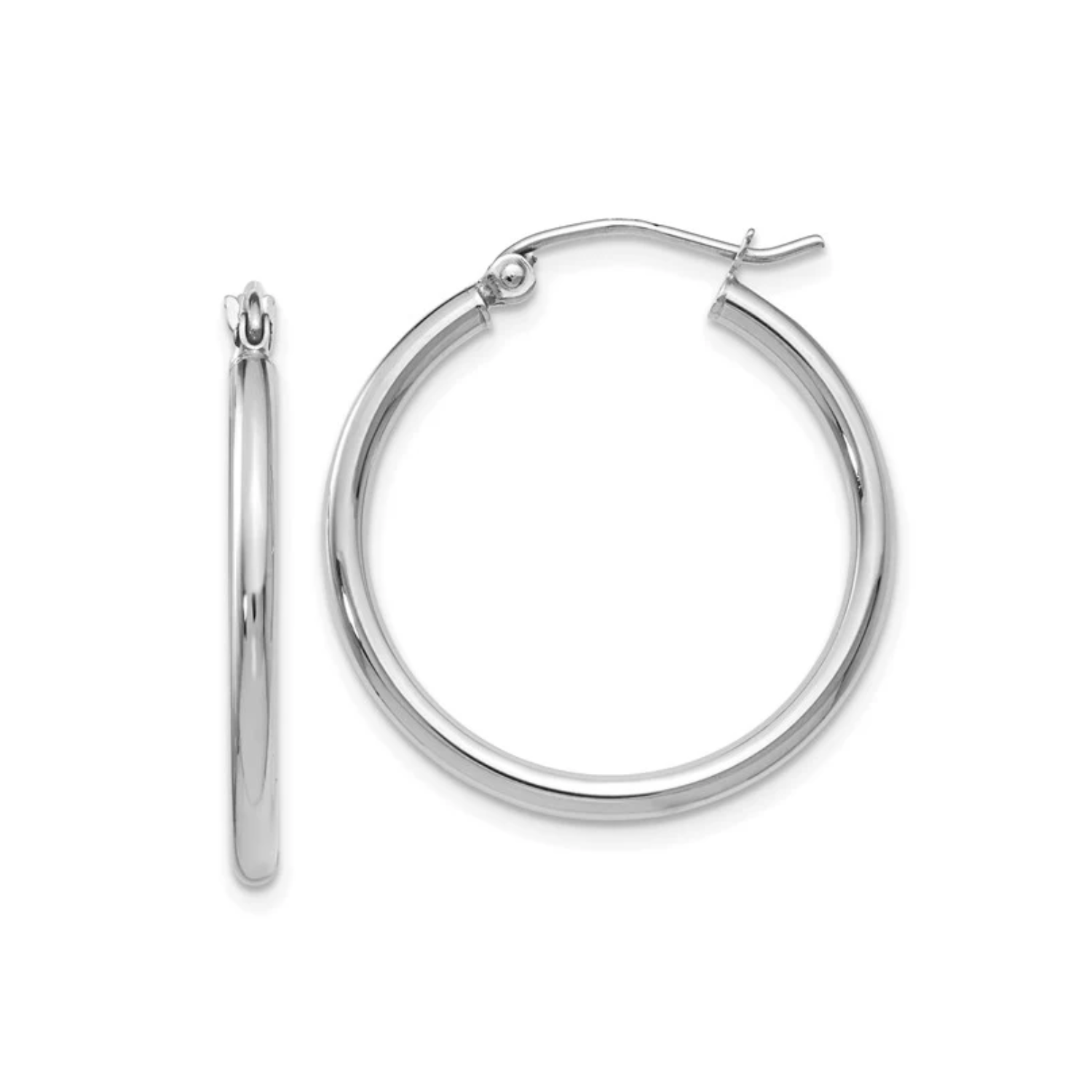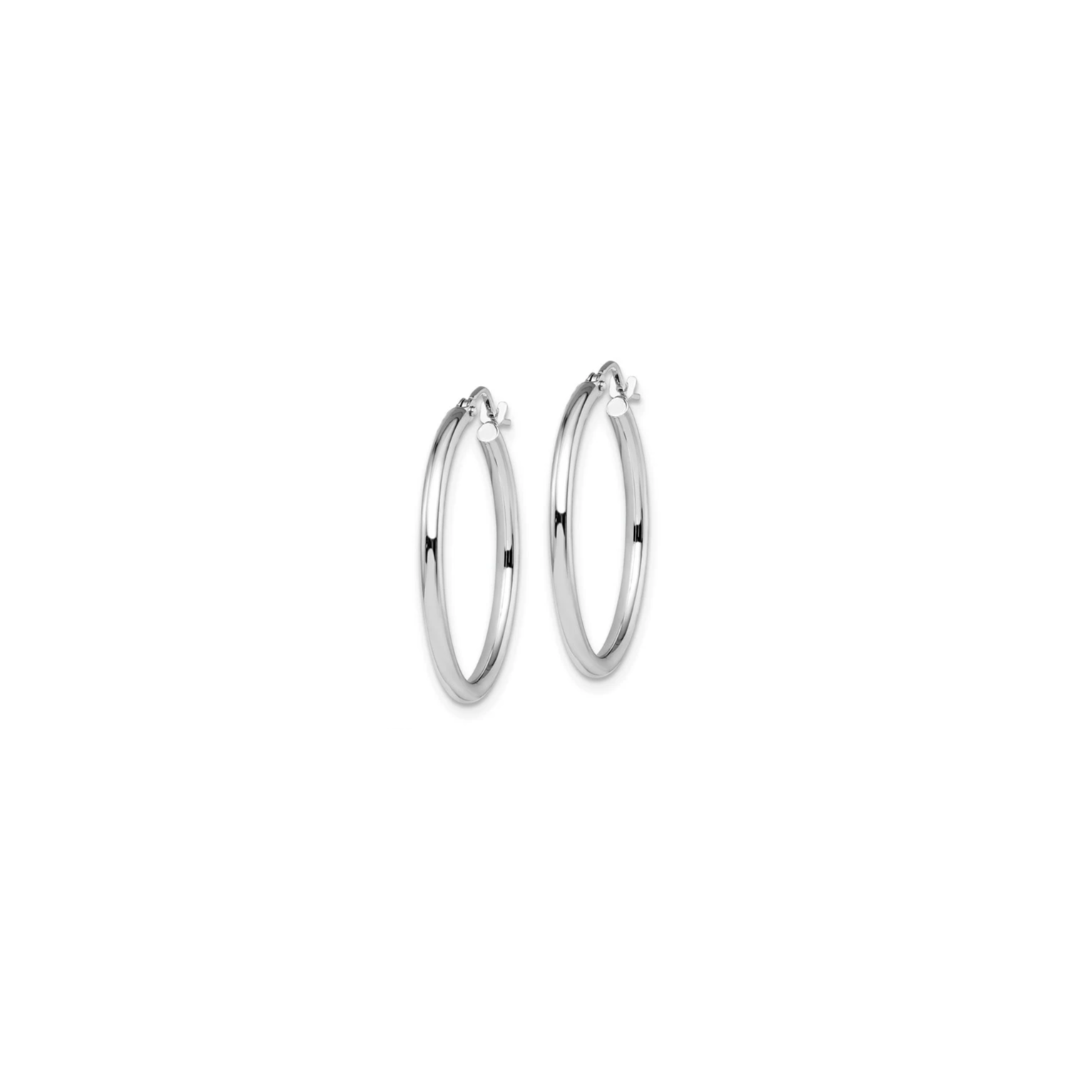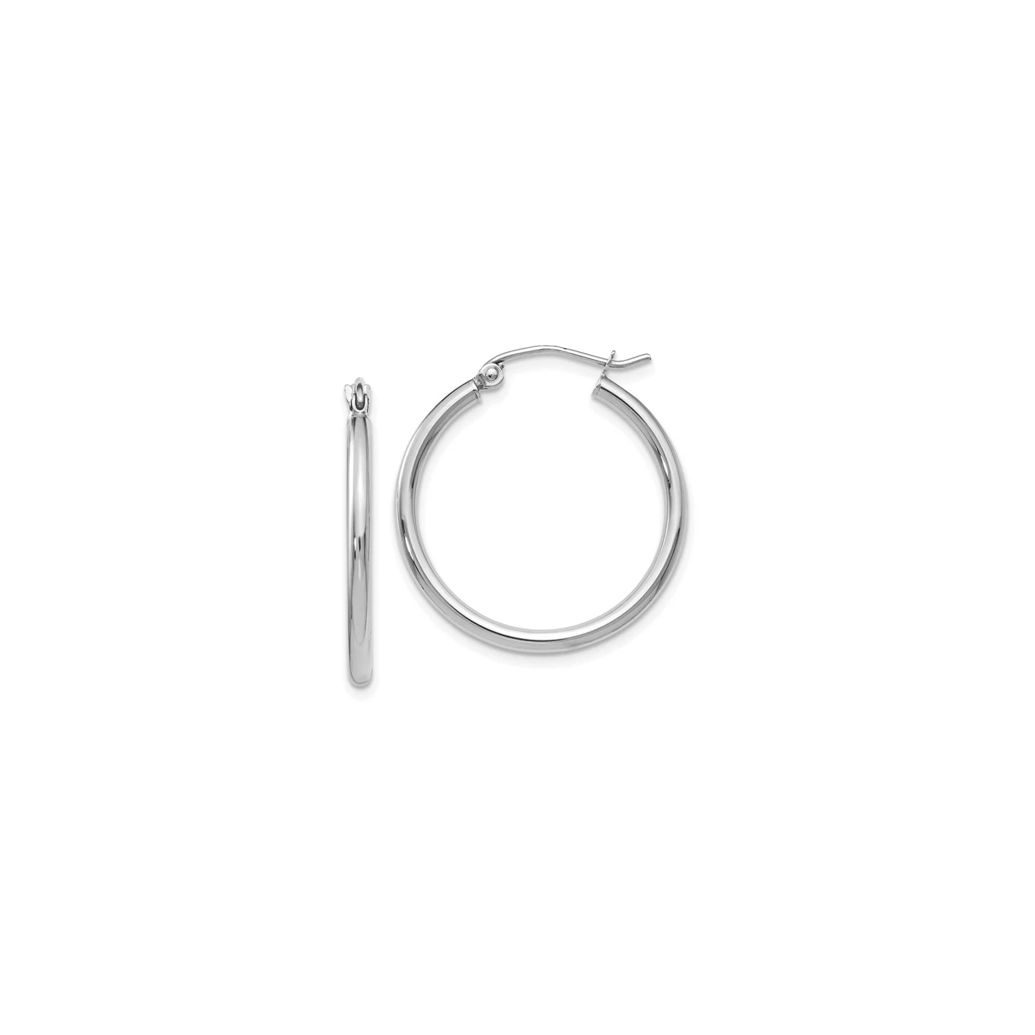 Elevate your everyday style with these sophisticated 14K white gold hoop earrings. Crafted with meticulous precision, each earring boasts a luminous polished finish that beautifully reflects light with every movement. Their classic silhouette makes them a versatile accessory, suitable for both casual outings and special occasions. Their understated elegance ensures they complement a variety of outfits, making them a cherished addition to any jewelry collection. Wear them with confidence, knowing they effortlessly encapsulate timeless grace and modern allure.Details