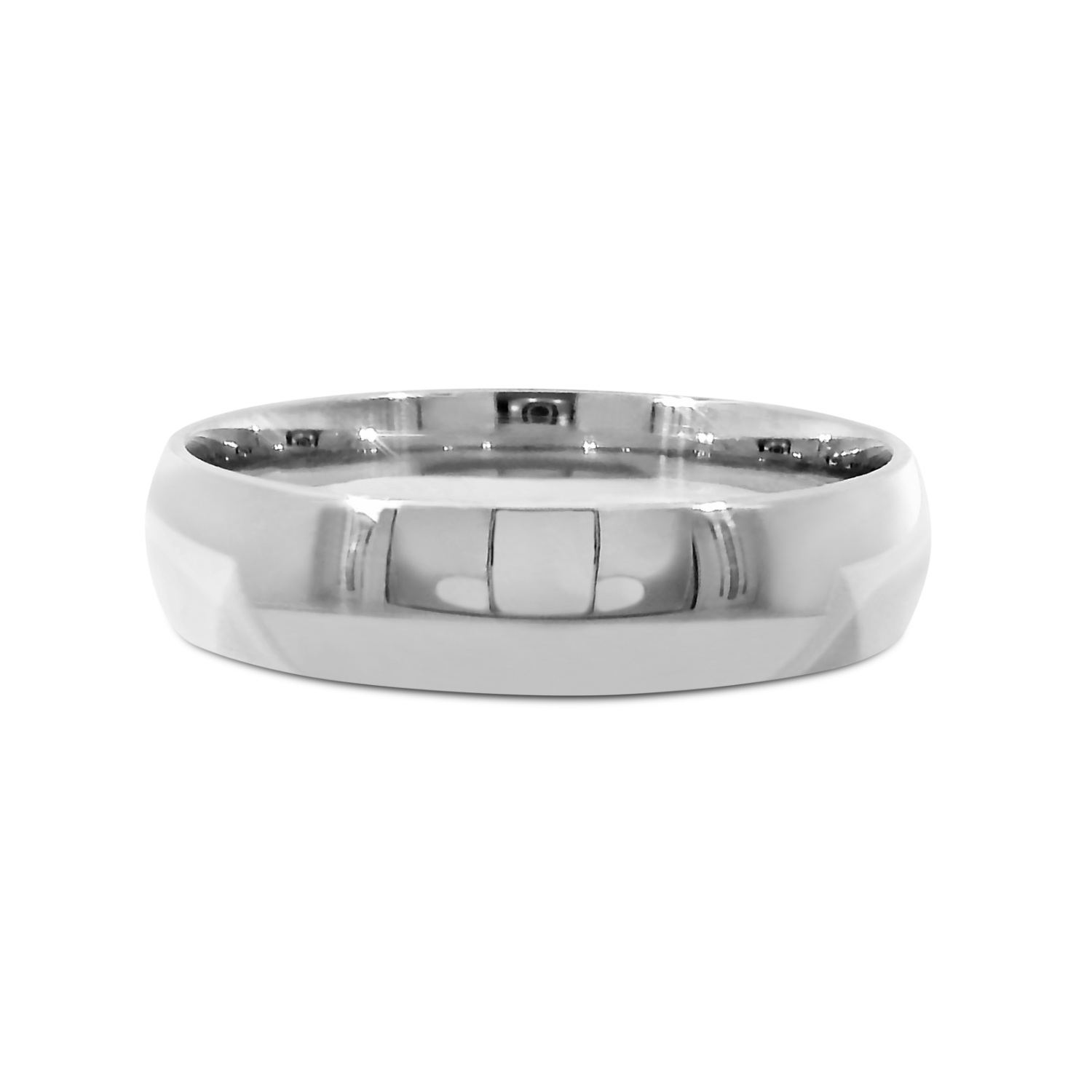 14 karat white gold 5 mm lightweight comfort fit wedding band.Details