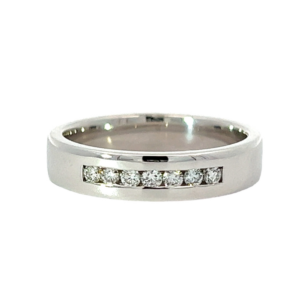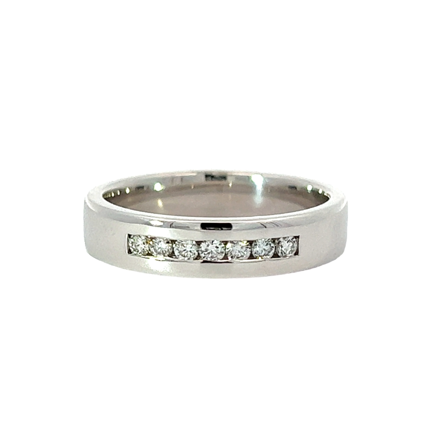 Discover timeless elegance with our 14K white gold Bensel Made men's diamond band. This sophisticated ring features a row of round brilliant cut diamonds, meticulously set in a sleek 14K white gold band. Ideal for weddings, anniversaries, or as a statement of personal style, this band combines durability with refined luxury. Elevate any occasion with the understated brilliance and craftsmanship of this exquisite men's diamond band.Details