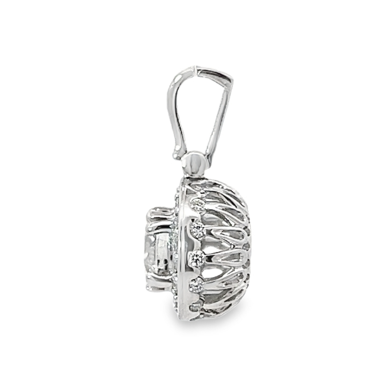 14K White Gold Bensel Made 1.53 ctw Diamond Halo Pendant