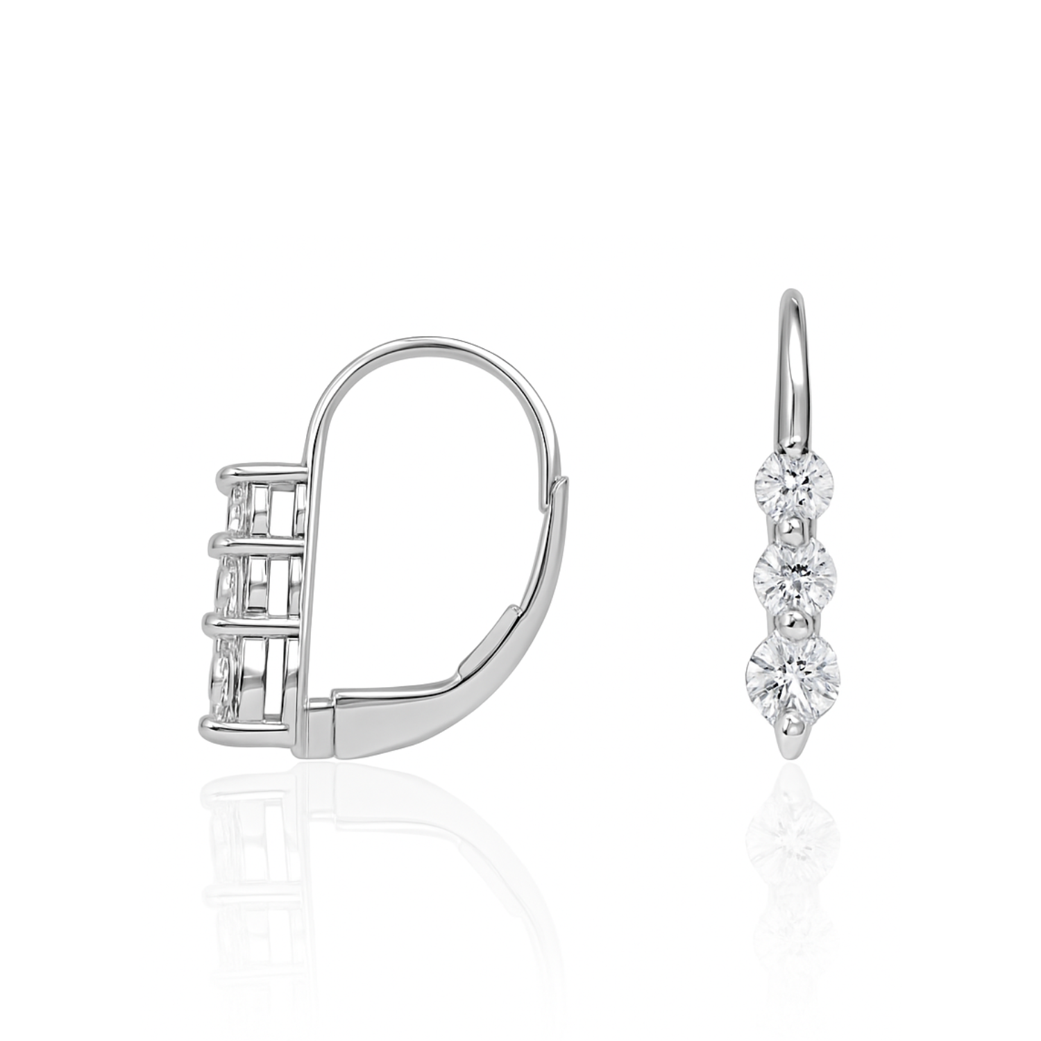 14K White Gold Three Stone Style Diamond Earrings
