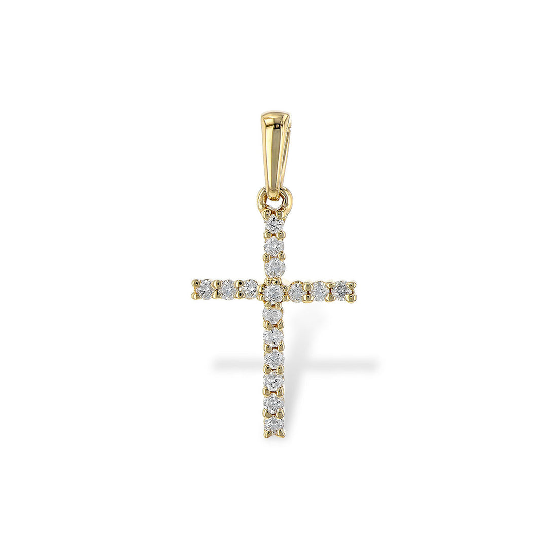 This beautifully designed 14K yellow gold necklace features an elegant cross design, adorned with sparkling diamonds. The warm yellow gold setting beautifully enhances the brilliance of the diamonds, creating a stunning contrast. This cross necklace is a timeless symbol of faith and devotion, rendered with a modern aesthetic that's perfect for both everyday wear and special occasions. The necklaces style and spiritual significance make it a thoughtful gift for a loved one or a meaningful addition to any jewelry collection.Details