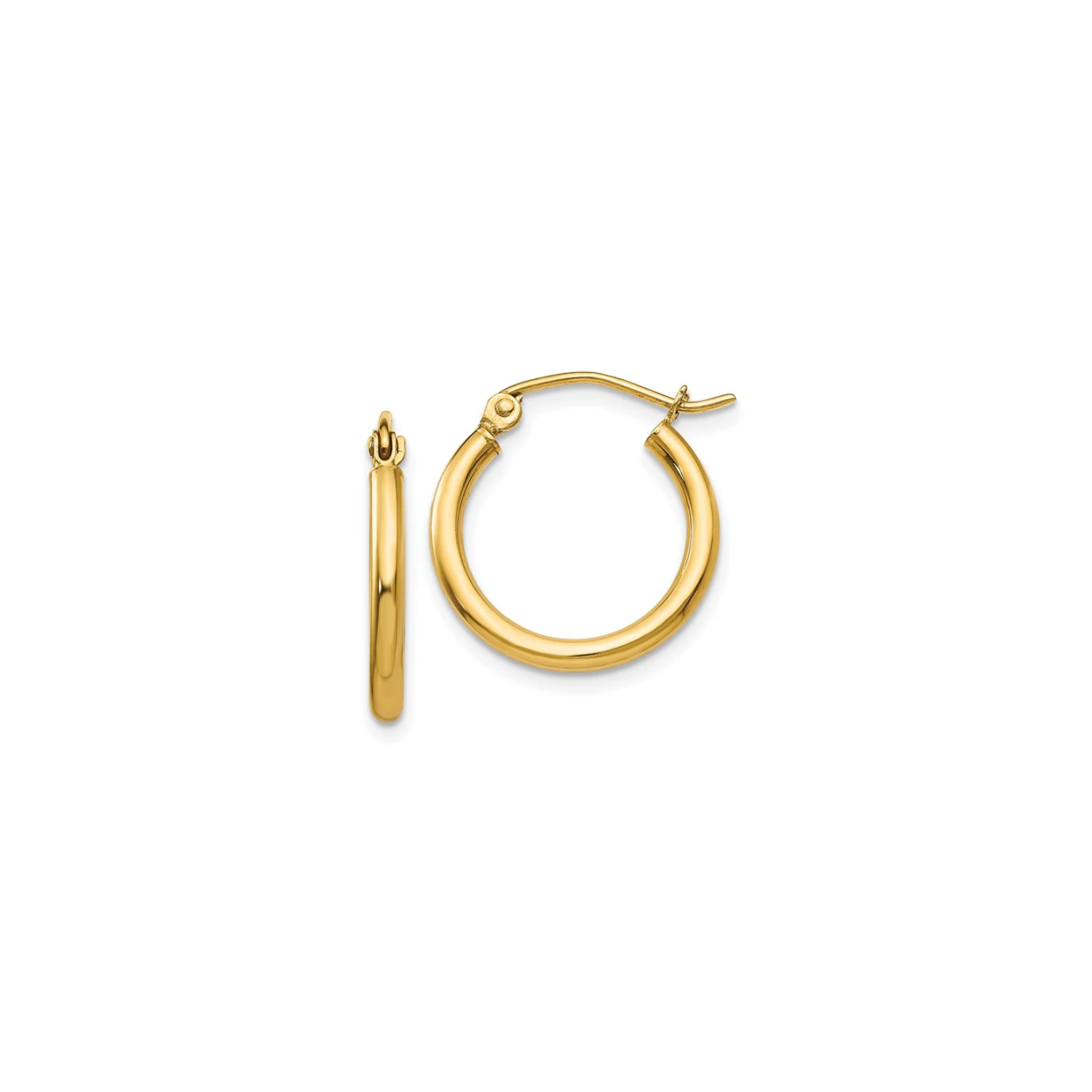 Elevate your everyday style with these exquisite 14K yellow gold hoop earrings. Crafted with precision, the hoops boast a gleaming polished finish that catches the light from every angle. Their timeless design ensures they're perfect for any occasion, whether it's a casual day out or a sophisticated evening event. These earrings are both elegant and enduring. A must-have addition to every jewelry collection!Details