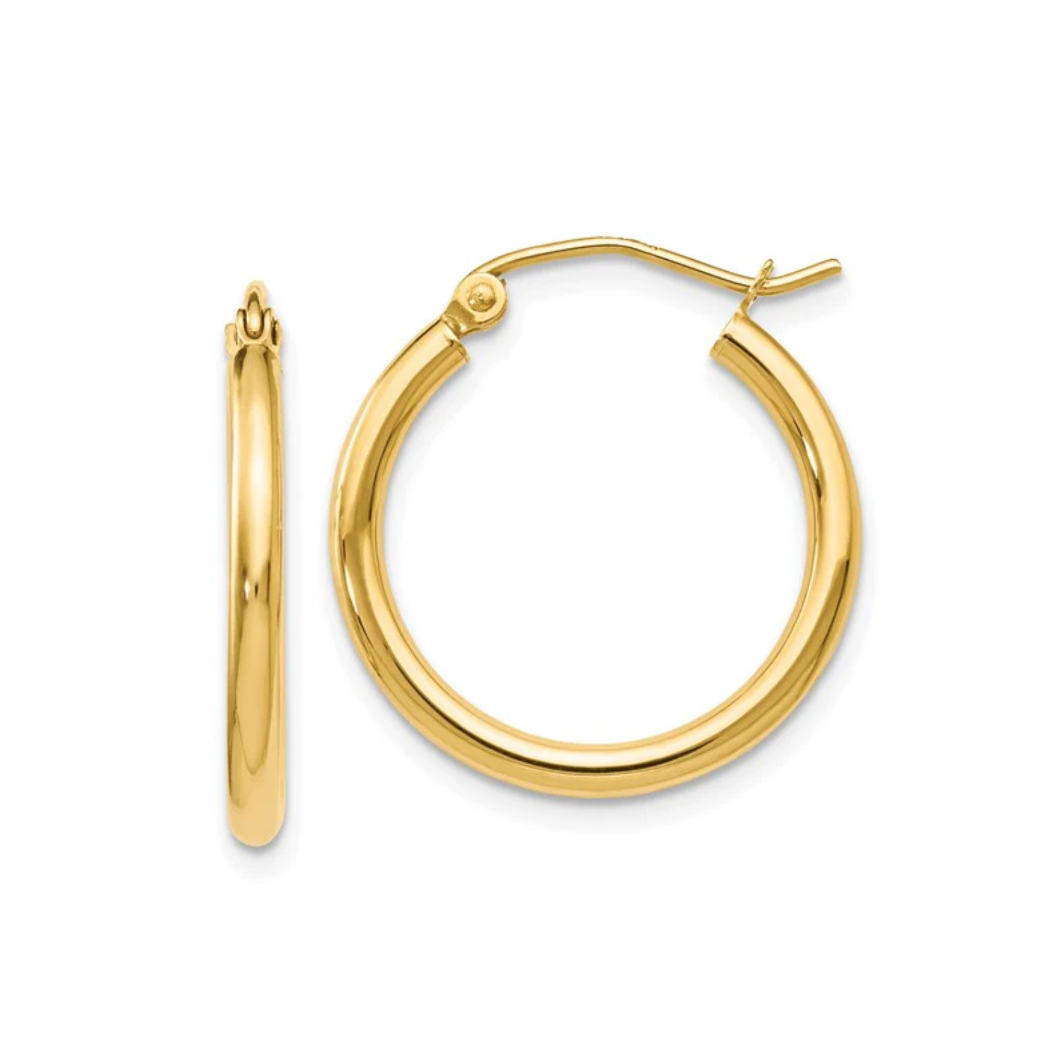 14K Yellow Gold 2 x 20 mm Polished Hoop Earrings