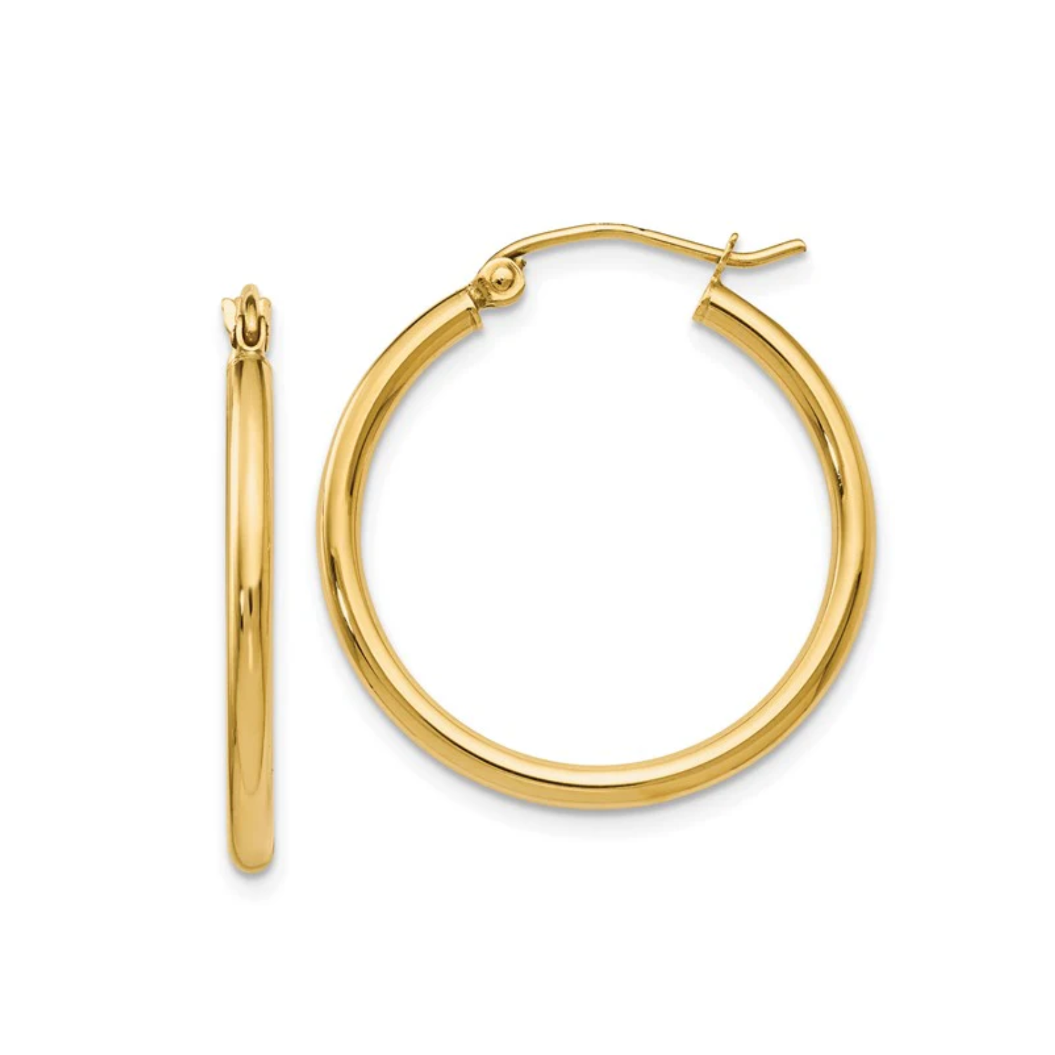 14K Yellow Gold 2 x 25 mm Polished Hoops