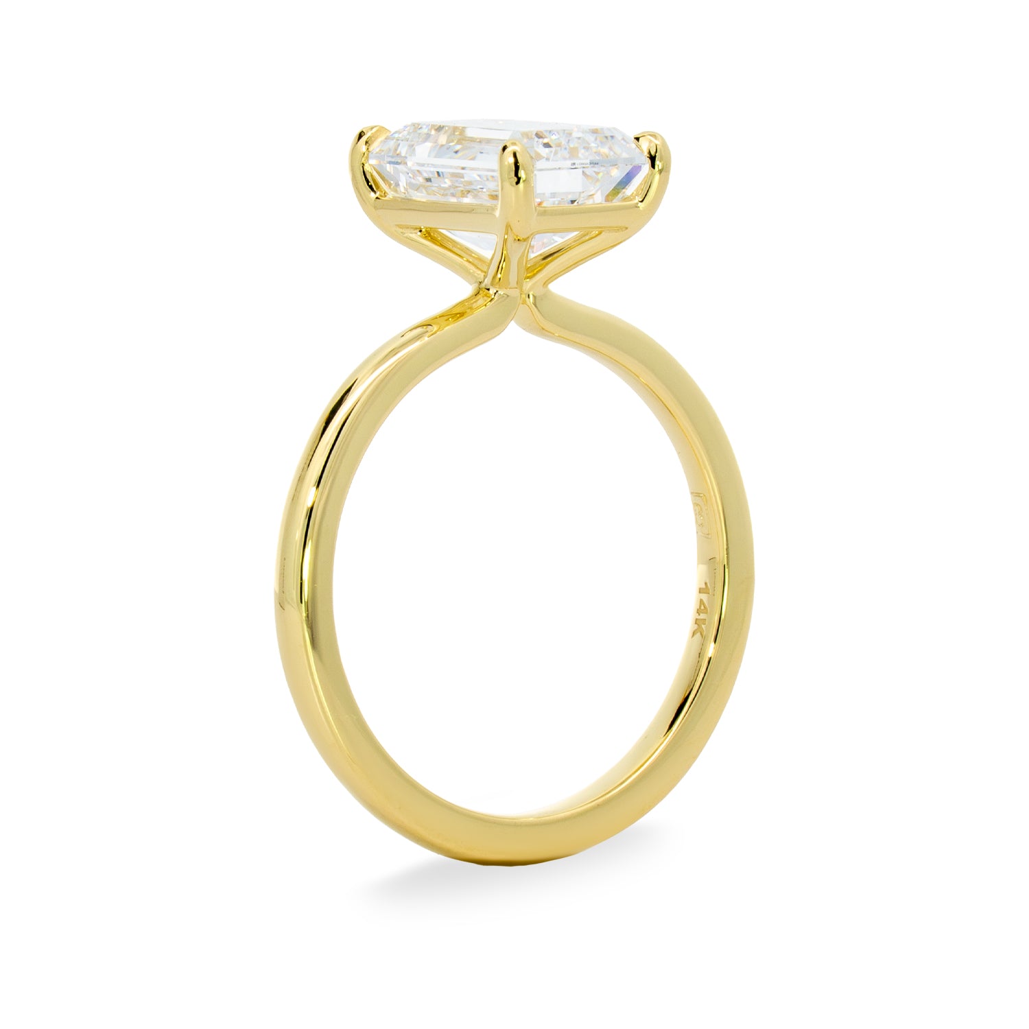 14K Yellow Gold 3.07 Carat Emerald Cut Lab Grown Solitaire Engagement Ring