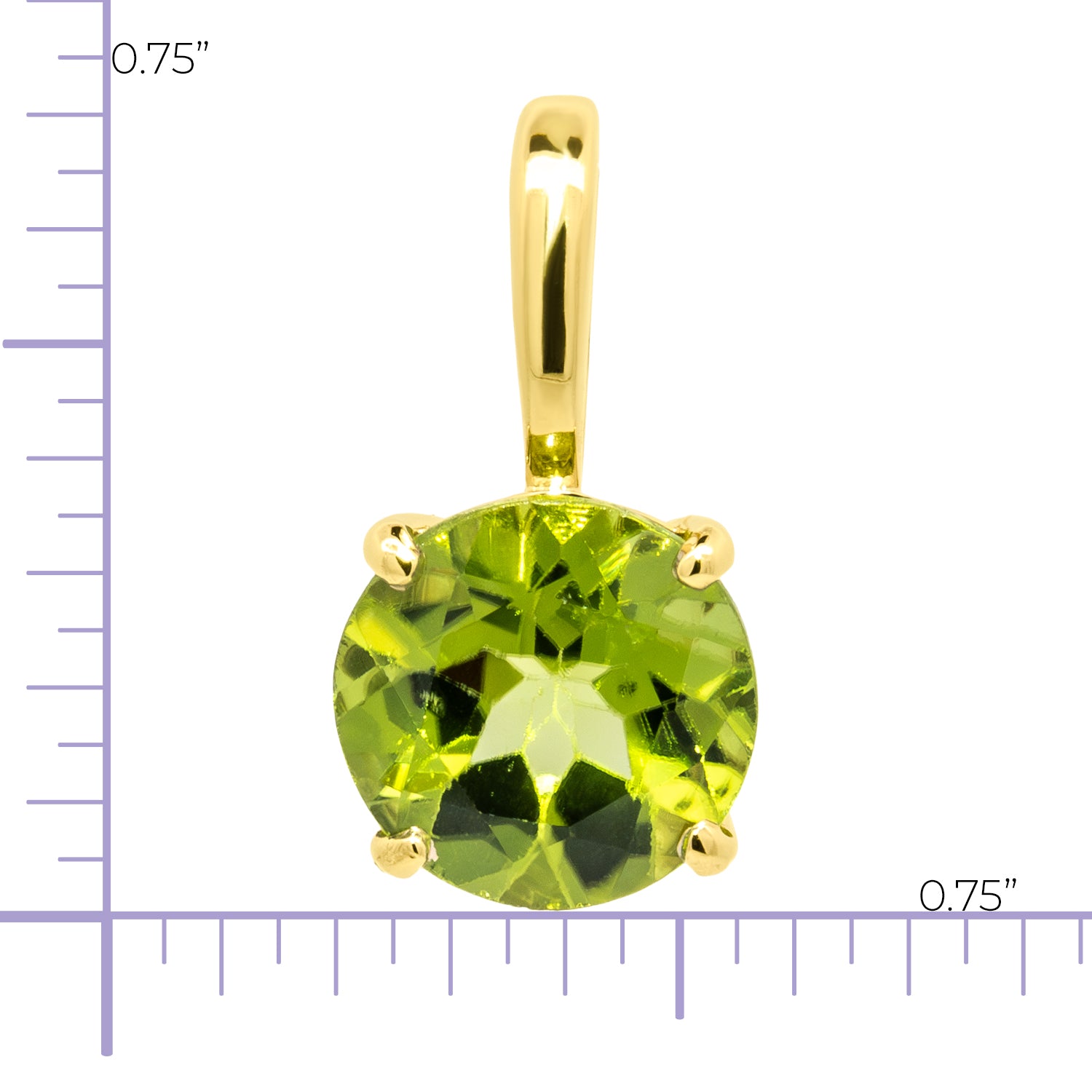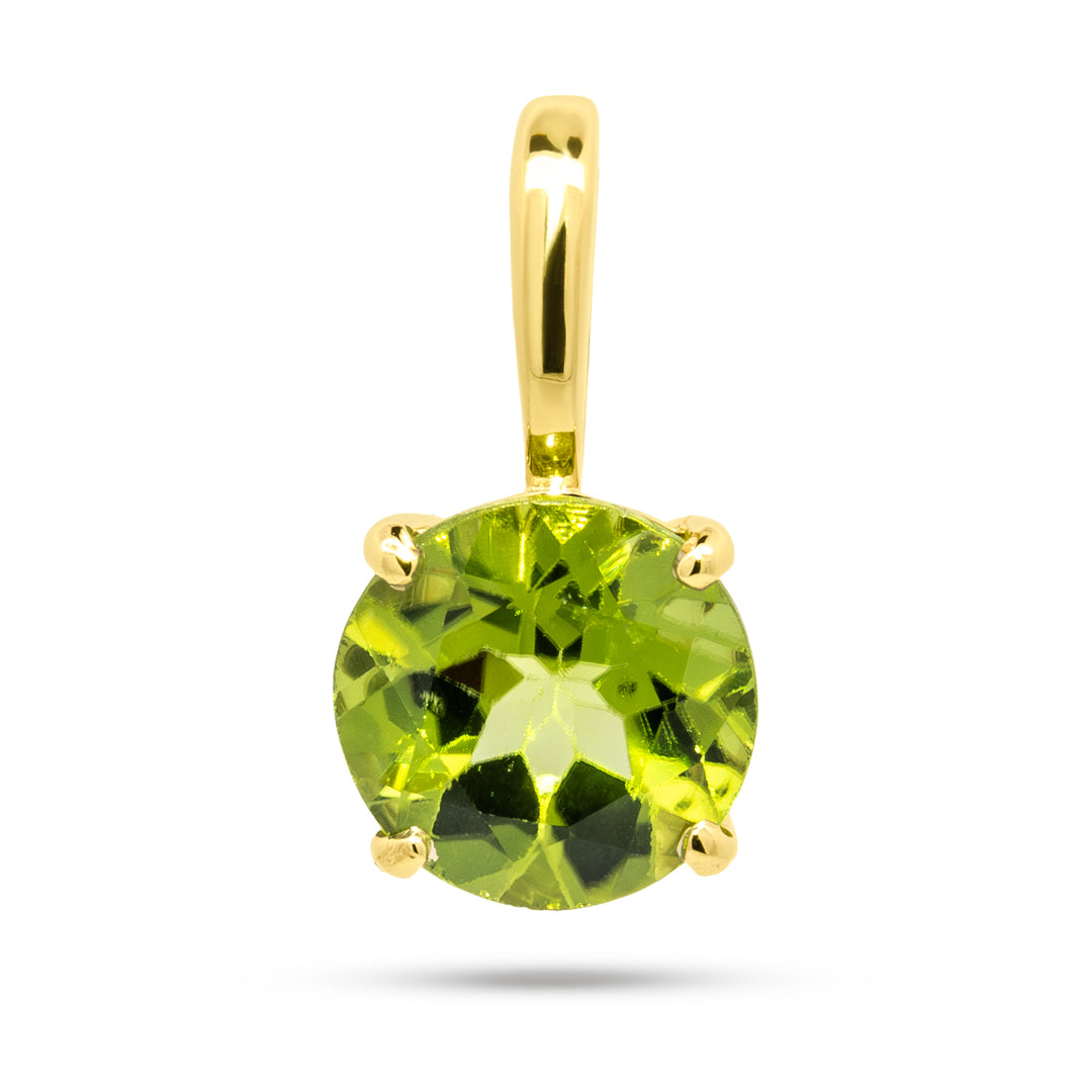 14 karat yellow gold solitaire style pendant set with a 3.37 carat round peridot.Details