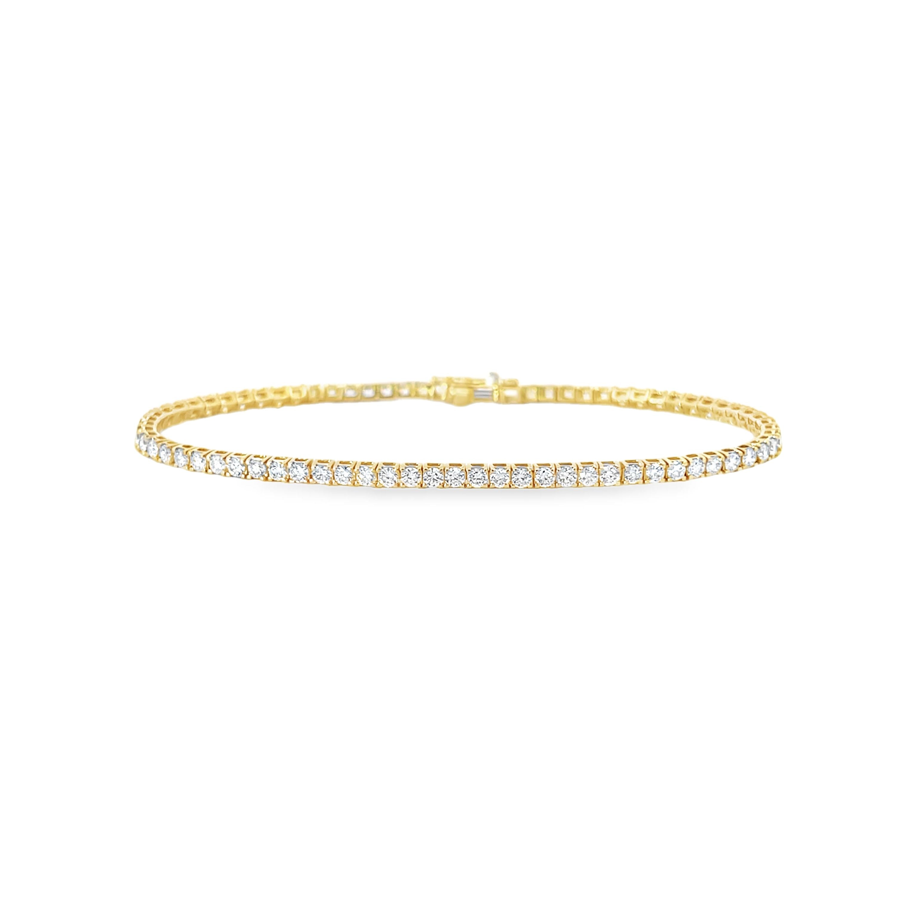 A timeless symbol of elegance, this 14K yellow gold tennis bracelet showcases a stunning array of lab grown diamonds. Each lab grown diamond is expertly set to maximize brilliance, creating a seamless display of light and movement. Designed for both sophistication and everyday wear, this bracelet is secured with a durable clasp, making it a refined addition to any jewelry collection.Details