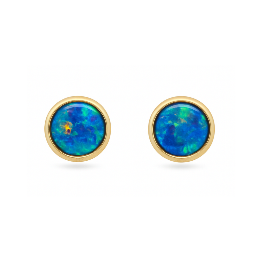 14K Yellow Gold 4 mm Opal Doublet Studs